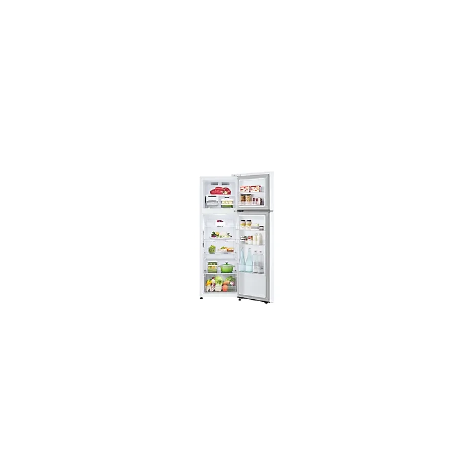 Réfrigérateur congélateur en haut Lg GTBV20SWGKDCaracteristiques principales : Classe énergétique : E.Consommation d’énergie annuelle : 203 kWh.Volume du congélateur : 58 l.Volume du réfrigérateur : 208 l.Niveau sonore : 35 dB.Catégorie de niveau sonore : B.Avantages produits : Distribution d’air froid Multi-Air Flow.Type de pose : Pose libre.Volume total : 266 l.Nombre de porte : 2.Fonctionnalité appareil du froid : Compartiment glaçons.Autonomie en cas de coupure : 12 h.Nombre de clayettes : 3.Type de clayettes : Plastique et verre.Couleur : Blanc.Style et design : Classique.Dégivrage du réfrigérateur : No frost.Type de congélation : Froid ventilé.Pouvoir de congélation : 2,5 KG24H.Dégivrage du congélateur : No frost.Nombre de tiroirs : 4.Distributeur : Sans distributeur.Coût estimé d’utilisation annuel : 46 Euros.Classe climatique : SN-T (+10 – +43°).Type de fixation : Sur charnières.Ouverture de la porte : A droite.Porte réversible : Non.Caractéristiques complémentaires : – Fonction congélation express, 3 balconnets contre porte.Connecté : Non.Hauteur : 168 cm.Largeur : 55,5 cm.Profondeur du produit : 63,7 cm.Garantie d’origine : 2 ans.Poids : 51 kg.Type de réfrigération : Froid ventilé.Pays de fabrication : Vietnam.Origine de fabrication : Fabriqué hors Europe.Disponibilité des pièces détachées : 10 ans.Points forts : Volume 266 L – H x L x P : 168 x 55.5 x 63.7 cm – Classe E – 35 db.Réfrigérateur à Froid ventilé 208 L.Congélateur à Froid ventilé 58 L.Fabrique à glaçons Twist Ice – Multi Air Flow.Caracteristiques principales :