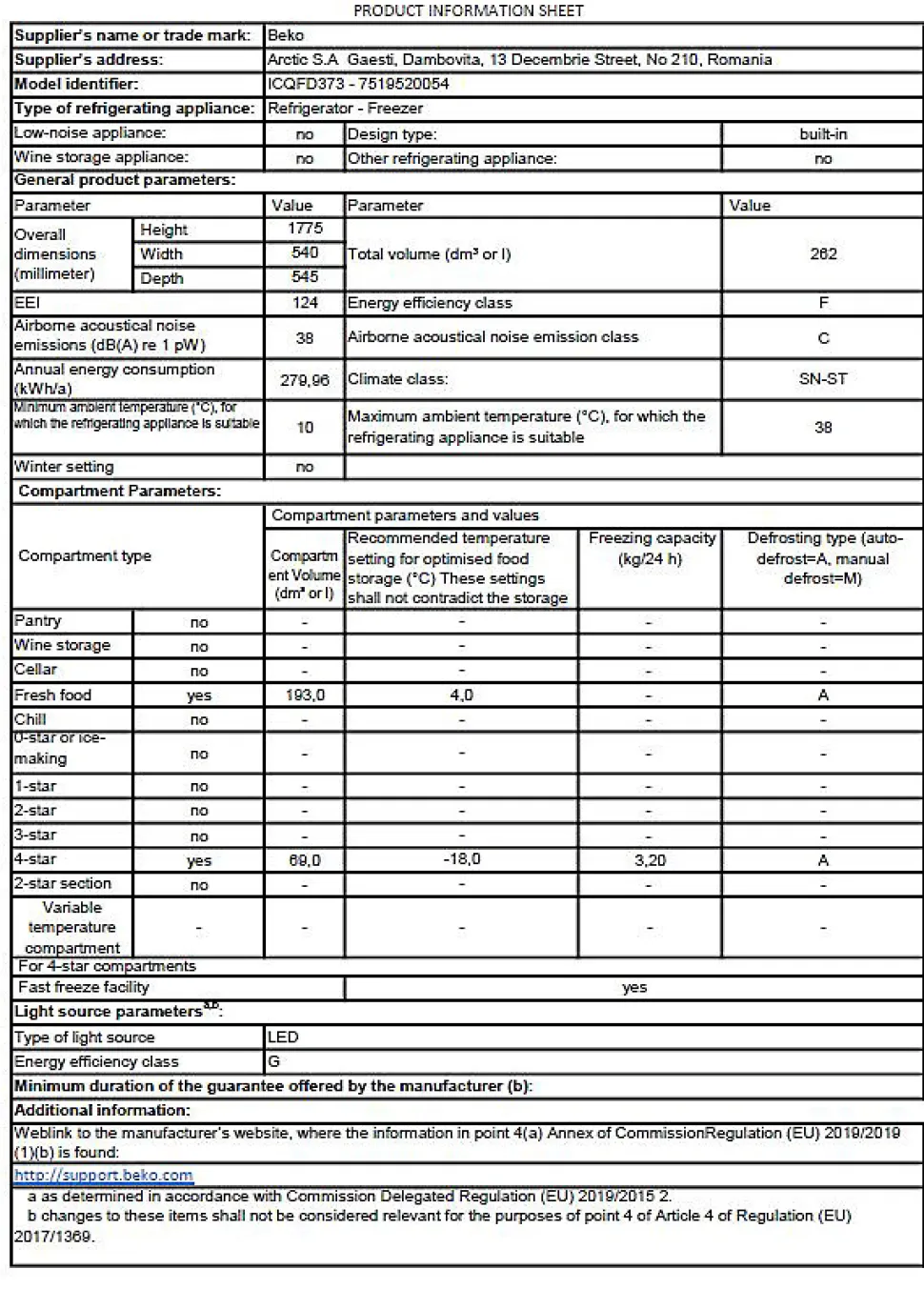 - Capacité de congélation : 4 kg/24h – Autonomie du congélateur : 13 h