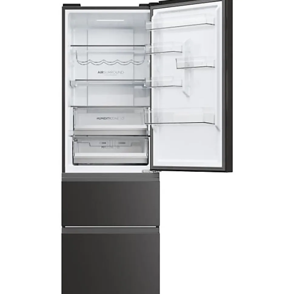 Réfrigérateur combiné Haier 3D 60 Series 5 HTW5618ENPT – 360 L, No Frost, Compresseur Inverter, LED, Portes réversibles, 185 x 59,5 x 66,7 cm, Noir/Gris Silver
