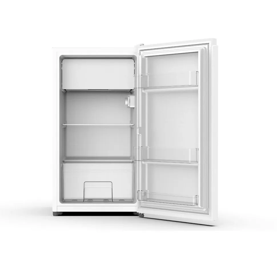 Réfrigérateur table top 45cm 91l Frigelux – Réfrigérateur table top 45cm 91l R0TT94BE Frigelux.Format Compact: Le réfrigérateur table top R0TT94BE offre un volume net global de 91 litres, ce qui en fait un choix idéal pour les petits espaces, les cuisines compactes, les studios ou les bureaux.Compartiment à Glaçons: Le R0TT94BE dispose d’un compartiment à glaçons de 11 litres pour vous permettre de préparer et de conserver des glaçons pour rafraîchir vos boissons.Flexibilité d’Installation: Sa porte réversible avec une poignée intégrée offre une flexibilité d’installation pour s’adapter à différentes configurations de cuisine. – Réfrigérateur table top.Pose libre.Volume net global : 91 L.Volume réfrigérateur : 80 litres.Volume congélateur : 11 litres.Classe énergétique : E.Type de froid : statique.Éclairage LED blanc.Dégivrage :Réfrigérateur : manuel.Congélateur : manuel.1 porte réversible, poignée intégrée.Thermostat mécanique.Consommation électrique annuelle : 85 kWh.Classe climatique : N-ST (16°C – 38°C).Niveau sonore : 40 dB.Voltage : 220-240 V.Puissance : 50 W.Type de gaz : R600a.1 bac à légumes3 balconnets1 clayette verre1 clayette bac à légumesCompartiment congélateur 0*2 pieds réglablesDimensions (HxLxP) : 83.1 x 44.5 x 47 cmCouleur: BlancPoids net (kg) : 19.