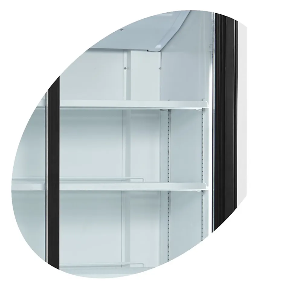 Réfrigérateur vitré à led Mesures et contenu : Canettes 330 ml : 1472 pcesCanettes 500 ml : 928 pcesBouteilles 330 ml : 672 pcesBouteilles 500 ml PET : 672 pcesPlate de température : 2 à 10 °CClasse climatique : 4Poids brut / net : 189 / 174 kgVolume brut / net : 895 / 660 lDesign et matériaux : Dimensions des tablettes2 : 1070x475Nombre et type de porte : 2 porte vitrée coulissante à fermeture automatiqueVitrage de sécurité : OuiNombre et type de tablettes : 5 clayettes blanchesCouleur de tablette : BlancDimensions des tablettes : 1072 x 470 mmPieds : 4 pieds ajustablesRoulettes : 4 roulettesFinition extérieure : BlancFinition intérieure : Acier peint en blancÉclairage intérieur : LEDSerrure : OuiFroid et fonctions : Type de régulation : Électronique