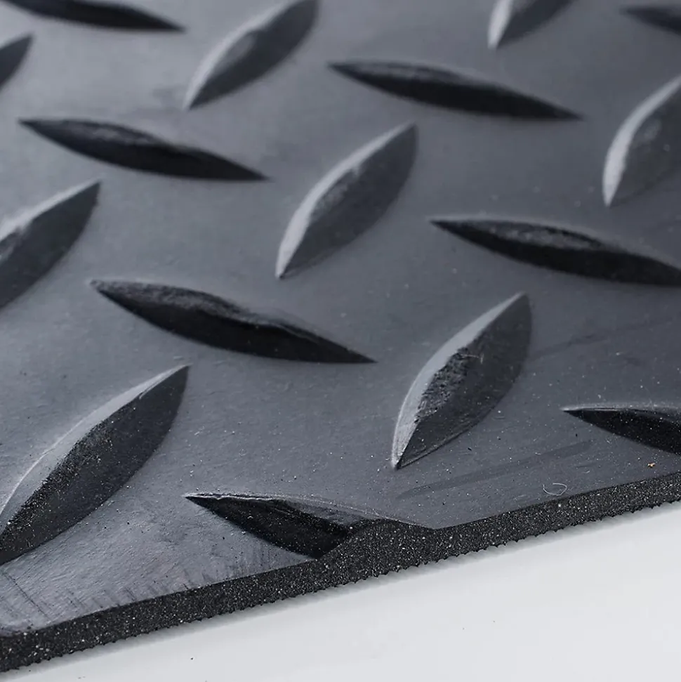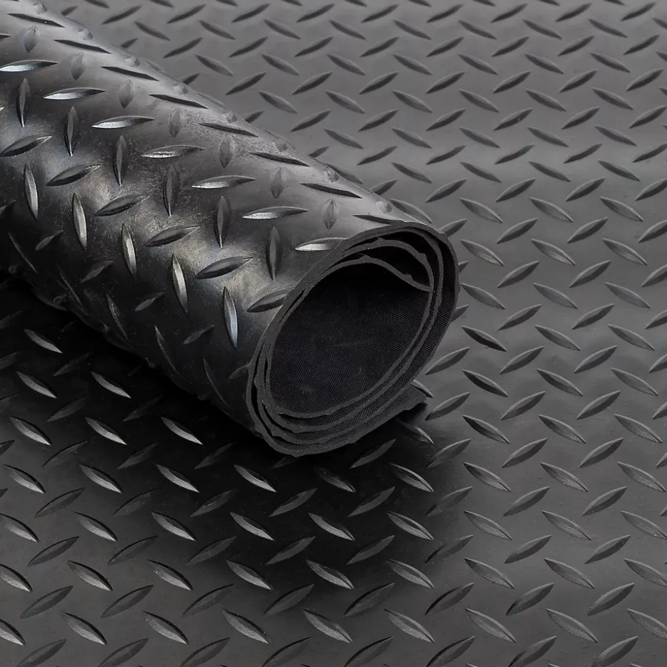 Rouleau en caoutchouc avec structure de plaques d’usure – 3 mm d’épaisseur ️ Robuste, antidérapant, durable Les tapis en caoutchouc à structure de plaques de déchirures pour les charges moyennes à élevées, sont prédestinés à être utilisés dans l’industrie et le commerce. Grâce à leur surface ondulée, les feuilles de caoutchouc offrent une très bonne adhérence. En outre, les tapis en caoutchouc sont extrêmement robustes et ont donc une très longue durée de vie. Grâce à leur résistance aux intempéries, les tapis en caoutchouc hydrofuge peuvent être utilisés à l’extérieur sans aucun problème. Note : Ce produit est destiné à la protection des bâtiments industriels. Il n’est pas destiné et adapté à des utilisations où il entre en contact avec la peau humaine. Structure de la plaque d’usure du tapis en caoutchouc – Propriétés du produit ️ 100% caoutchouc Largeurs disponibles : 100 cm, 150 cm Longueur au choix entre 50 cm et 1000 cm Tailles disponibles (en cm) : 50×50, 100×200, 100×300, 100×500, 100×1000 Epaisseur du matériau : environ 3 mm Poids : environ 4100 gr/m² Résistance à la force de traction selon la norme DIN 53504 : 4 MPa Allongement à la rupture selon la norme DIN 53504 : 180% Dureté ° Shore A +/- 5° selon la norme DIN 53519 : 65 Résistance à la température : de -30 °C à +69 °C Structure de surface : plaque de déchirure Notre conseil pour vous : Des tolérances dimensionnelles liées à la production de l’ordre de 1 à 3 % ainsi que de petites irrégularités dans la structure, la couleur, par exemple des différences entre la photo d’écran et le moniteur, ne sont pas exclues, merci de votre compréhension. Les fabrications aux dimensions souhaitées sont fabriquées séparément pour vous, c’est pourquoi l’échange et la reprise ne sont malheureusement pas possibles.