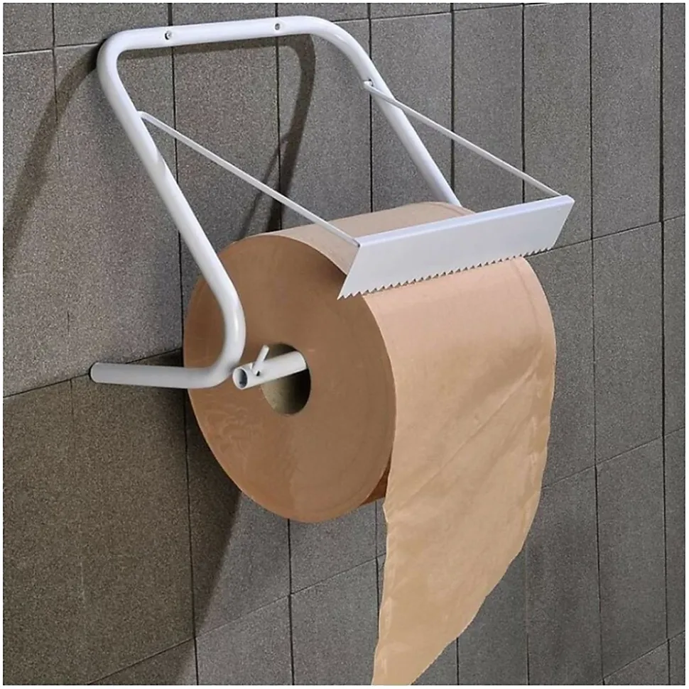 Dévidoir papier en acier blanc pour toute bobine d’essuyage 30cm max. Idéal pour les garages, les chantiers, ateliers de maintenance et d’entretien…Livré sans papier.Dévidoir mural dérouleur porte essuie toutPour plus d’hygiène, utilisez un dérouleur d’essuie tout mural plutôt que de laisser votre rouleau de papier posé à même le sol.Ce dérouleur de papier essuie tout vous permet d’avoir toujours à portée de main de quoi vous essuyer.Idéal pour l’atelier ou le garage, ce dévidoir mural évite le gaspillage grâce à sa barre de coupe munie de 30 dents qui tranchent net.Informations techniquesMatière : métal.Dimensions :Hauteur : 30 cmLongeur : 35 cmLargeur : 21 cmBarre de coupe : 30 cmColoris : blanc.Installation :Se fixe au murKit de fixation fourni : 2 vis et 2 chevillesComporte 2 embouts noirs pour amortir les chocs contre le mur.Livré sans rouleau essuie tout….