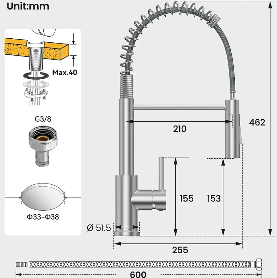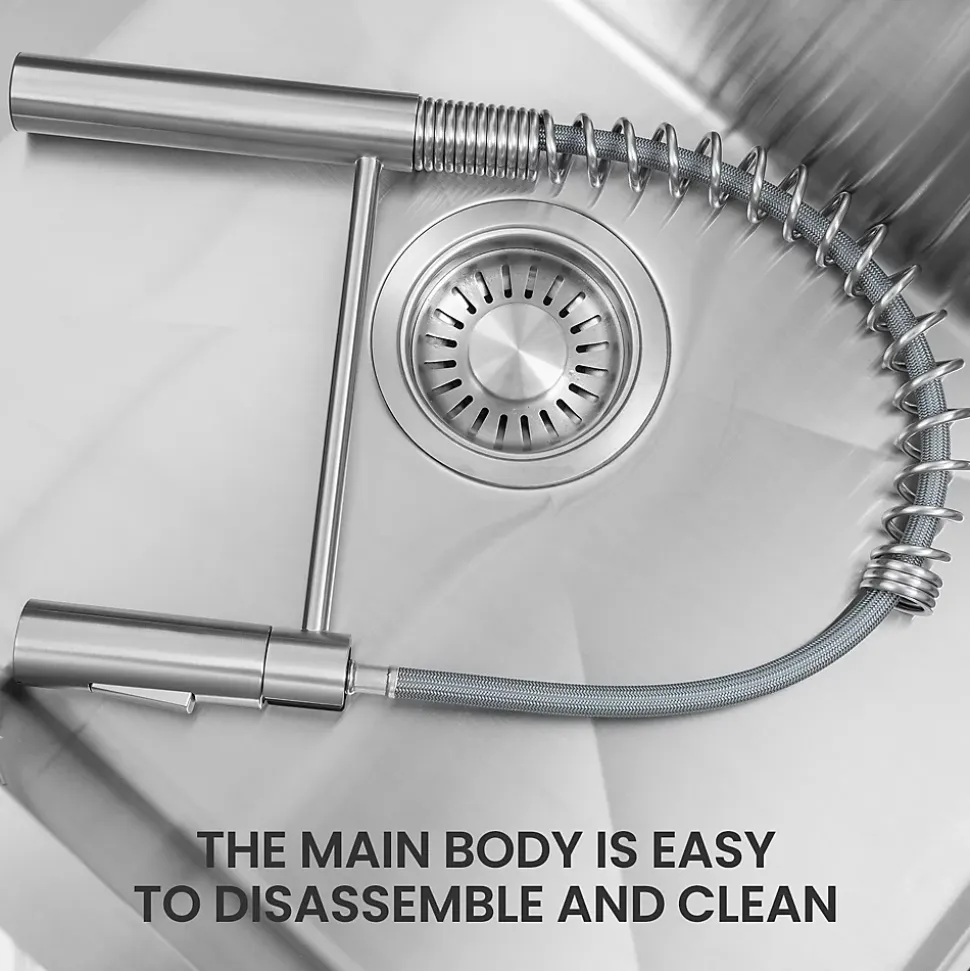 - ✔ Construction en Acier Inoxydable Premium – Fabriqué avec un flexible à ressort et un mécanisme de rotation en acier inoxydable, garantissant une longévité exceptionnelle et une résistance à la corrosion.