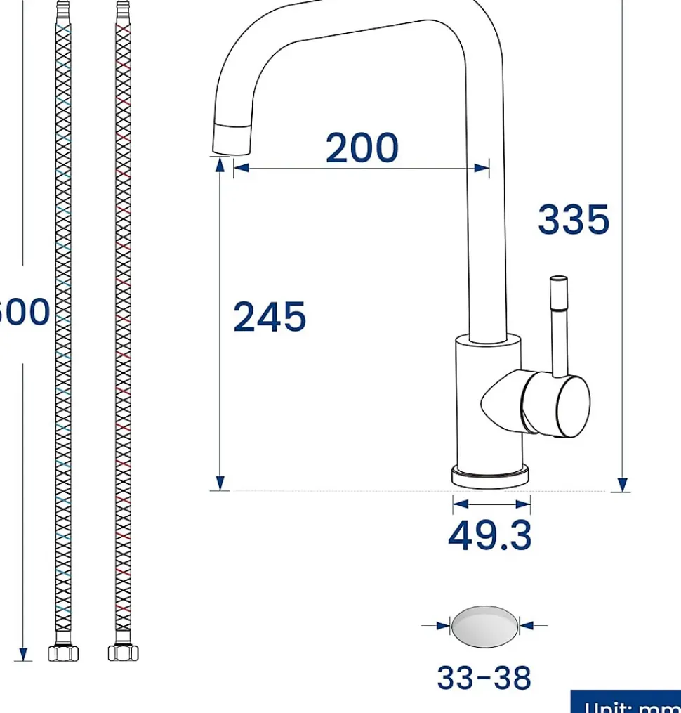 - ✔ Installation express : Fourni avec écrou à serrage rapide et tube fileté inox (70 mm) pour plans de travail ≤40 mm.