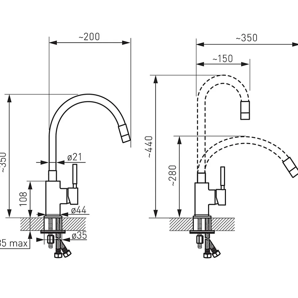 - Robinet rotatif à 360° et bec ultra flexible très pratique pour rincer la vaisselle. Cartouche en céramique anti-fuite.