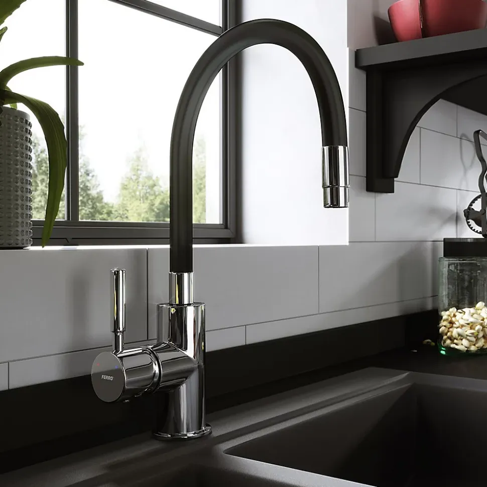 - Robinet mitigeur de cuisine ZUMBA marque FERRO avec corps en laiton de haute qualité.