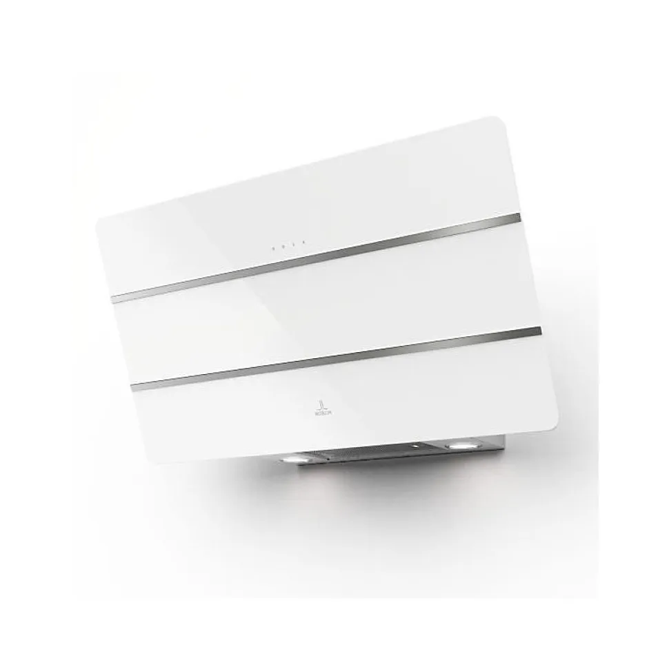Hotte décorative – Largeur 80 cm – CAMELIA 800 verre – 4 vitesses dont Booster temporisé – Commandes sensitives – Moteur Energy puissant et économe en énergie – Aspiration périphérique : les ouvertures périphériques permettent de capter toutes les vapeurs et fumées en optimisant l?efficacité de la hotte – Double aspiration : pour garantir un bon traitement des graisses, la hotte est équipée d?un filtre au niveau du panneau d?aspiration ainsi que sur le dessous de la hotte – Filtre à graisse aluminium – 2 filtres à charbon fournis (référence 5403004 – Conditionné par 2) – Eclairage LED – Sortie Ø 150 mm – Cheminée en option – Finition verre blanc.