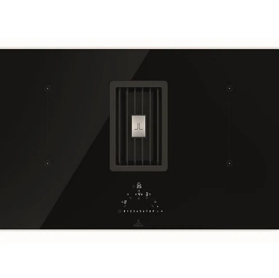 Table de cuisson aspirante induction VIRTUOSE Roblin 83 cm, 4 foyers 3,7 kW divisibles en 2 zones flexibles 38 x 22 cm. Fonction sécurité renforcée, 10 niveaux de puissance, surface verre vitrocéramique, extraction intégrée avec débit d’air 700 m3/h et filtre lavable, label énergétique A++. Commandes sensitives rétroéclairées.