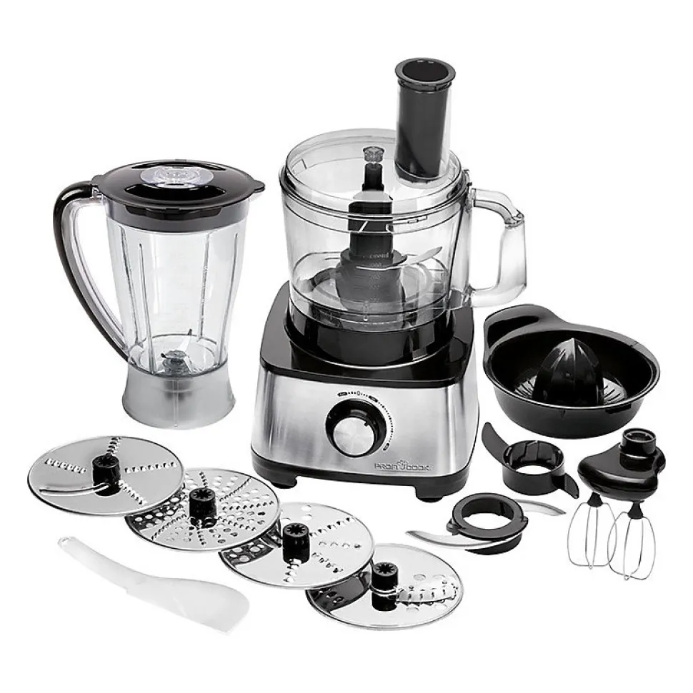Robot de cuisine ProfiCook PC-KM 1063, 1200 W, inserts interchangeables et disques en acier inoxydable, vitesse variable, fonction turbo, boîtier en acier inoxydable, 11 accessoires inclus.
