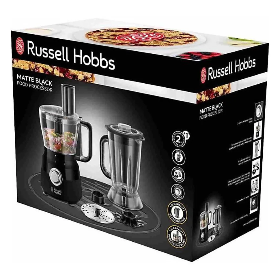 Le robot multifonction Matte Black de Russell Hobbs est conçu pour les chefs en herbe. Avec 600 W de puissance, un bol de 2,5 L, des lames en inox et un disque réversible, il vous permet de préparer vos ingrédients avec précision. Son design noir mat apporte une touche moderne a votre cuisine.