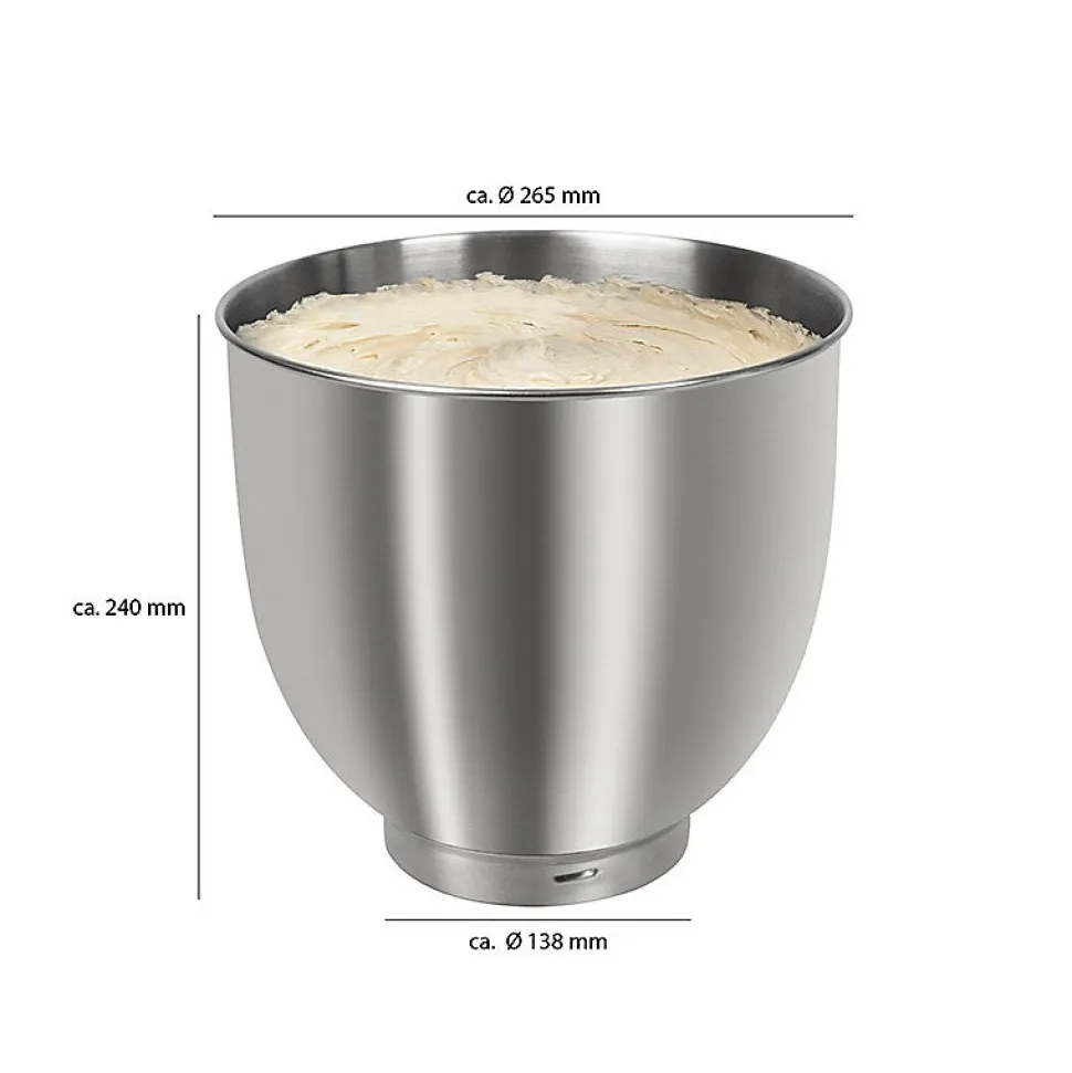 Pétrin robuste avec engrenage métallique résistant8 niveaux de vitesse (0/1/2/3/4/5/6 + fonction pulse)Bol extra-large de 10 litres en acier inoxydable pour la préparation de pâtes de max. 6-6,5 kg de pâteMoteur professionnel haute performance à longue durée de vie (1500 watts)Performance constante grâce au contrôle électronique de la vitesse de rotation en fonction de la charge.Crochet mélangeur en aluminium moulé sous pression – pour les pâtes légères comme la pâte brisée, la pâte à crumble ou la pâte à éponge.Crochet à pâte en aluminium moulé sous pression – pour les pâtes lourdes comme la pâte à levure, la pâte à pain ou la pâte à pâtes.Fouet en acier inoxydable pour monter le blanc d’?uf, la crème, la meringue et bien d’autres choses encore.Bras multifonction pivotant à 35°.Mécanisme de déverrouillage du bras multifonctionCircuit de sécurité – la machine s’arrête lorsqu’on soulève le brasInterrupteur rotatif (illuminé en blanc)Application de chrome de haute qualitéCouvercle transparent anti-éclaboussures avec ouverture de remplissageDémarrage progressif pour un mélange lentParticulièrement facile à utiliser et à nettoyerSupport sûr grâce aux pieds à ventouseMandrin à action rapide pour tenir les outils220-240 V, 50/60 Hz, 1500 W