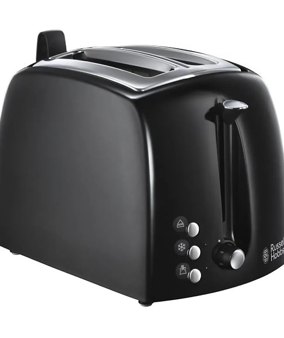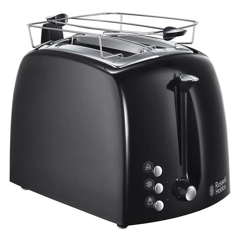 Le toaster Russell Hobbs Textures Plus 22601-56 offre un design élégant noir ultra brillant/mat, 2 fentes extra larges, 6 niveaux de dorure réglables, plateau de réchauffage, fonction décongélation, annulation et réchauffage, pince intégrée et centrage automatique du pain pour une cuisson optimale.