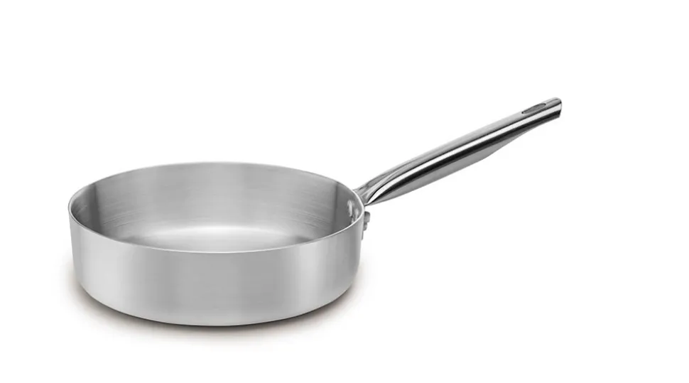 Sauteuse en aluminium pur extra résistant possédant une excellente conductivité thermique et une haute efficacité en diffusion de la chaleur. Convient pour gaz, vitrocéramique, plaque électrique. Bords renforcés et anses ergonomiques. Poignées rivetées de haute résistance pour plus de sécurité. Parois épaisses et fond renforcé très épais. L’extérieur est poli pour un nettoyage plus facile. L’épaisseur du fond évite toute déformation, offre un contact total avec la source de chaleur pour plus de rendement énergétique et une cuisson homogène.Fabrication à partir de feuilles d’aluminium pur à 100% recyclable. Les poignées tubulaires en acier inoxydable sont thermiquement isolantes. Robustesse, ergonomie, sécurité, efficacité et haute conductivité: la combinaison de la batterie de cuisine professionnelle CENTURY.Disponible en plusieurs diamètre. Capacité et hauteur en fonction du diamètre :