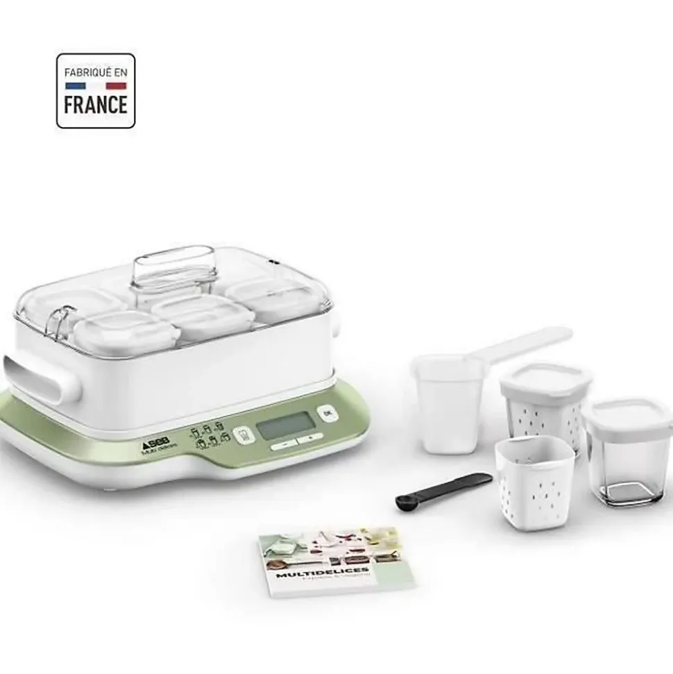 SEB Yaourtiere 6 pots, 6 programmes dont 1 mode express, Yaourts et desserts maison, Utilisation simple, Fabriqué en France YG660A11Avec la yaourtiere Multi Delices Express & Vegetal de Seb, préparez facilement et rapidement des yaourts maison, du fromage frais et une large variété de desserts lactés et végétaux. 100 % sans BPA pour une sérénité totale.