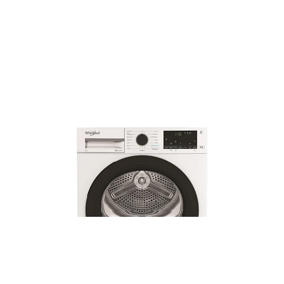 Sèche-linge à pompe à chaleur Whirlpool CWD84MWBSFRCe modèle 8 kg équipé du séchage électronique propose une performance exceptionnelle alliée à un soin intelligent du lingeGrâce à la technologie 6ème Sens et à la fonction PrecisionDry, il ajuste automatiquement la durée du cycle selon l’humidité des textilesIl propose 15 programmes, dont coton, mixte, laine, sport, duvet ou encore un cycle rapide de 30 minIl intègre aussi un programme téléchargeable et un mode extra silence pour un usage discret à toute heureDe nombreuses options sont disponibles : départ différé, niveau de séchage, basse température, anti-froissage, minuterie ou encore contrôle à distanceSon tambour inox de 110 L garantit robustesse et respect des tissusDoté d’un moteur standard, il bénéficie de la technologie SilentSpin qui limite les vibrations et les bruits des fermetures éclair et boutonsIl dispose d’un éclairage intérieur, de voyants de maintenance, et d’une brosse de nettoyage pour le condenseurNiveau de sécurité, le verrouillage enfant est de la partie.Disponibilité Pièces Détachées : 10 ans