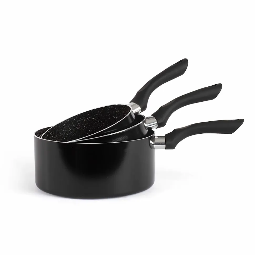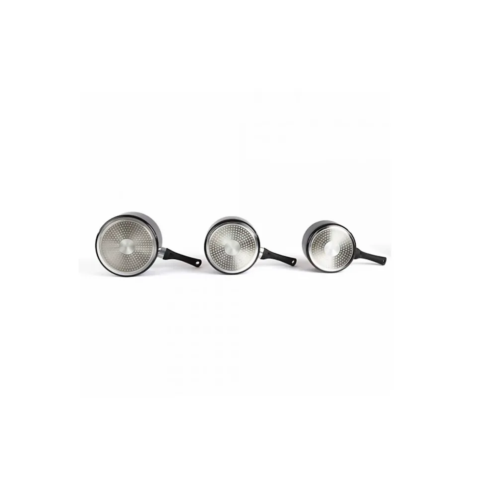 Série de 3 casseroles aluminium 16/18/20cm Livoo – Ces casseroles MEN125N Livoo vous permet de profiter de 3 casseroles de 16/18/20 cm de diamètre pour cuisiner facilement différents aliments au quotidien. Les casseroles sont compatibles tous feux dont induction, et dotées d’un revêtement antiadhésif, vous permettant de cuisiner sans ajout de matière grasse et de les nettoyer facilement après utilisation. Profitez d’un design classique et intemporel grâce à la finition intérieure en aspect pierre ainsi que le manche en silicone. – Type de produit : Set 3 casseroles.Finition : Aspect pierre.Manche amovible : Non.Compatibilité feux : Tous feux.Type de revêtement : Anti-adhésif.Peut être passé au four : Oui.Manche : 16 cm en silicone.Cuisson : Sans ajout de matière grasse.Matière : Aluminium.Couleur de produit : Noir.Diamètre (cm) : 16, 18 et 20.Epaisseur : 2,5 mm.Poids : 1,77 KG.