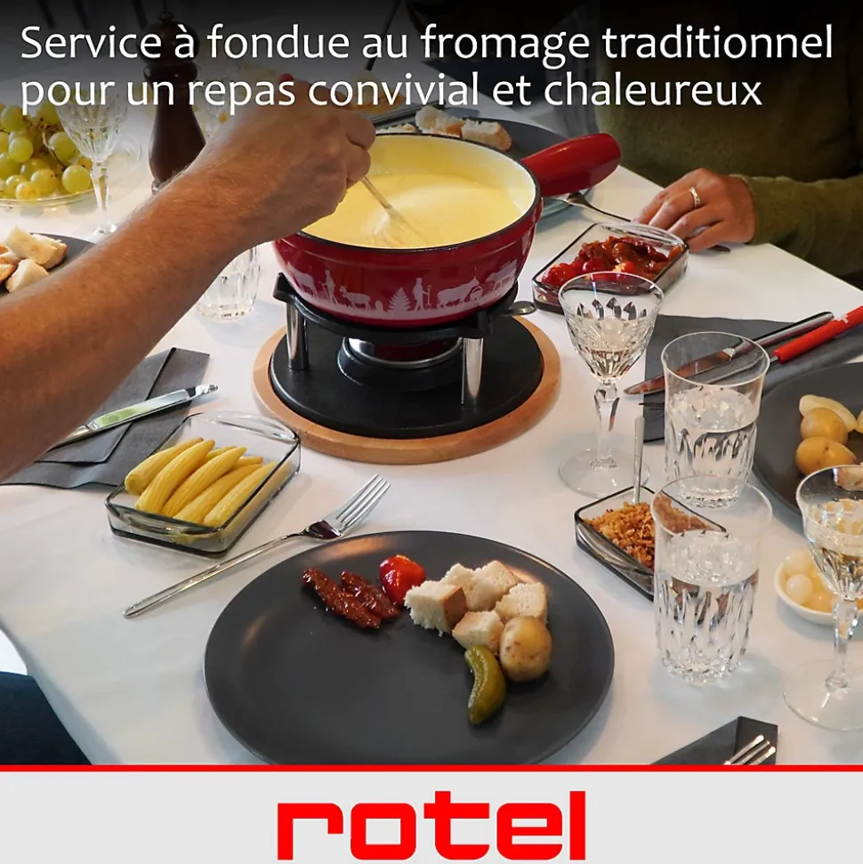 - UTILISATION : Le service à fondue savoyarde de Rotel est parfait pour vos soirées conviviales autour d’un bon repas, la fondue au fromage se déguste après une journée plutôt froide ou pour nouvel an