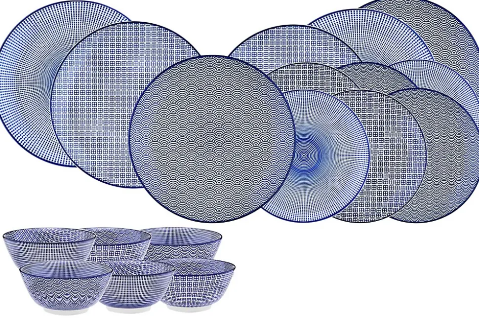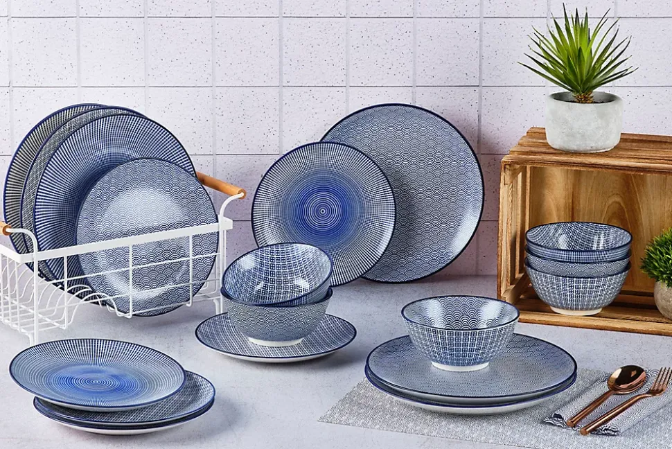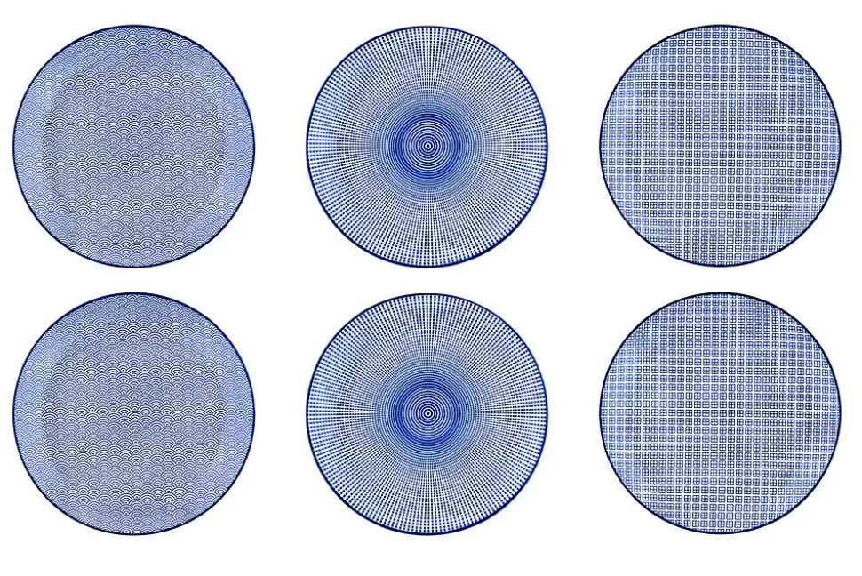 Le service Les Essentiels est constitué des 3 basiques pour 6 personnes, à savoir un bol, une grande et une petite assiette. L’assortiment est judicieusement dépareillé pour permettre un dressage de table facile, originale et harmonieux.Fabriqué à partir d’une porcelaine emaillée haut de gamme et ultra résistante, une machine importée du japon est utilisée pour apposer les motifs colorés, tandis que les bordures et certains détails sont peints à la main avant la cuisson à 1200°C.La collection PATTERN dans sa déclinaison Dark Blue sollicite votre créativité et permet un mix and match facile des couleurs lors du dressage de la talbe. Les motifs et les couleurs tournent d’une pièce à l’autre et nous invitent à l’échange et au partage.