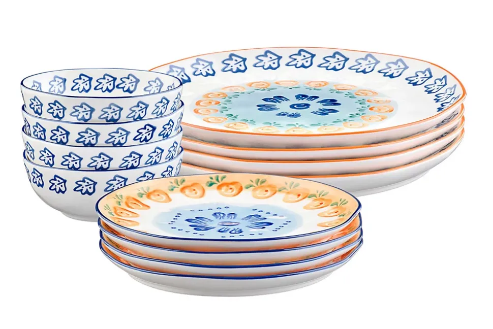 Le service Les Essentiels est constitué de 3 basiques pour 4 personnes, à savoir un bol de grande contenance, une grande et une petite assiette, soit tout le nécessaire à utiliser au quotidien pour vous accompagner dans tous les repas de la journée.Fabriqué en porcelaine blanche de haute qualité, chaque pièce est peinte à la main avec des motifs de feuillages, de fruits et d’agrumes par des artisans talentueux. Ces couleurs vives contrastent avec l’émail d’un blanc pur et rappellent l’artisanat et l’art de vivre italien.La collection NAPOLI s’inspire des vergers ensoleillés du sud de l’Italie. Elle nous invite au partage, entourés de famille et d’amis, avec des motifs joyeux et des couleurs lumineuses. Apportant une atmosphère chaleureuse et accueillante autour de la table, chaque pièce capture l’esprit de la dolce vita.