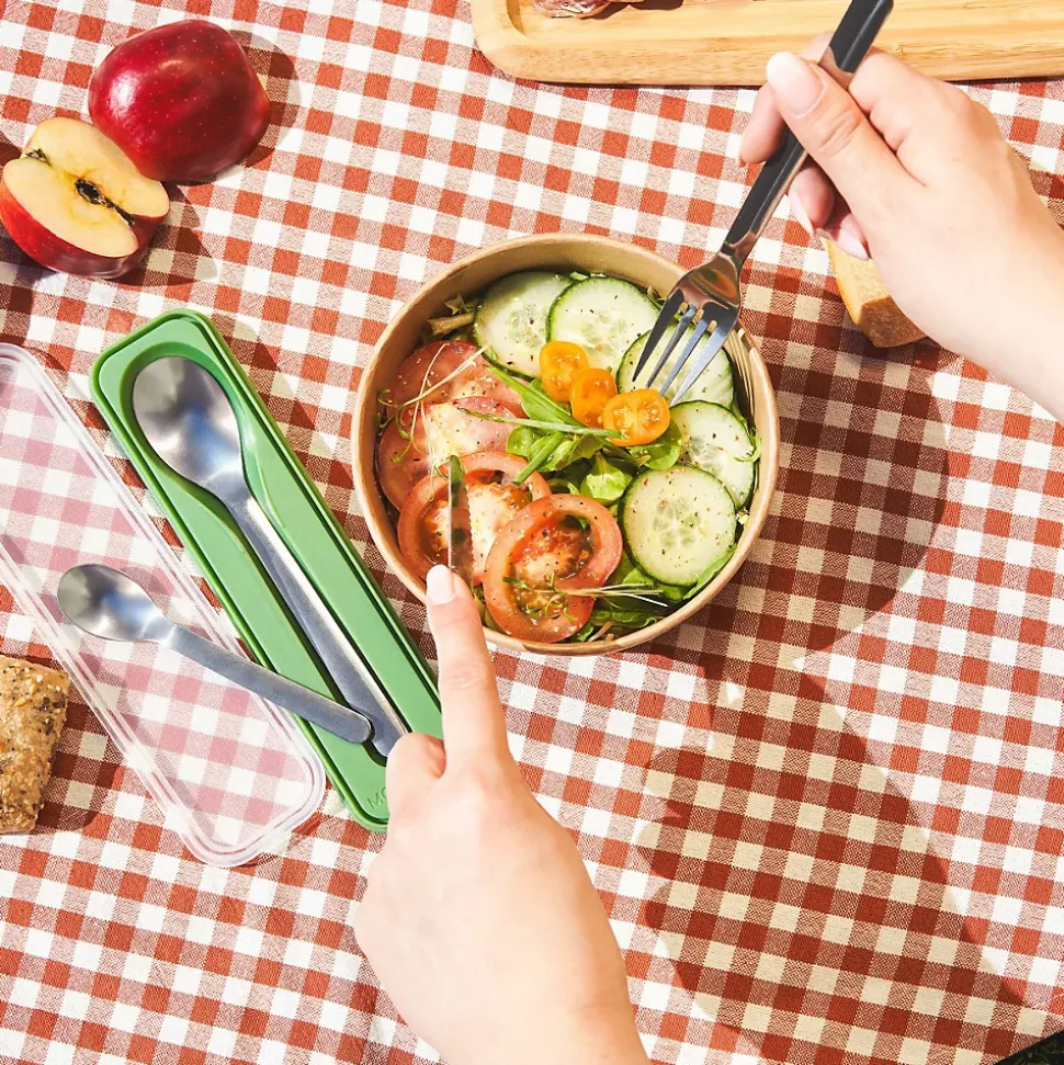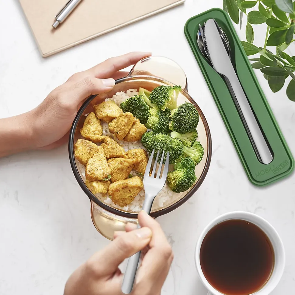 - Le Mobil’ Pocket est le compagnon idéal des déjeuners nomades. Léger et résistant, ces couverts sont éco-conçus et optimisés pour vos pauses repas en dehors ou à la maison. Le petit plus ? Une boite de rangement compacte qui leur permet de se glisser part