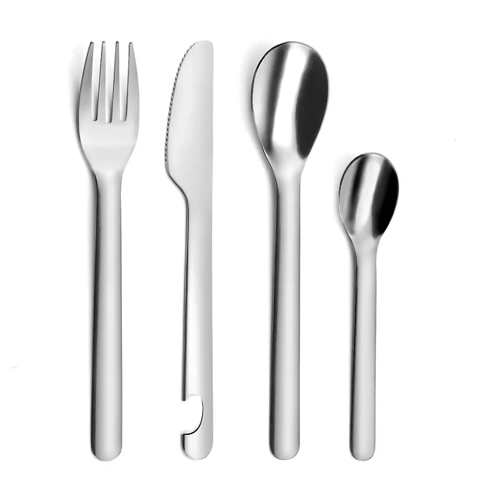 - 1 fourchette de table ; 1 couteau de table ; 1 cuillère de table ; une 1 café et 1 étui de rangement / transport