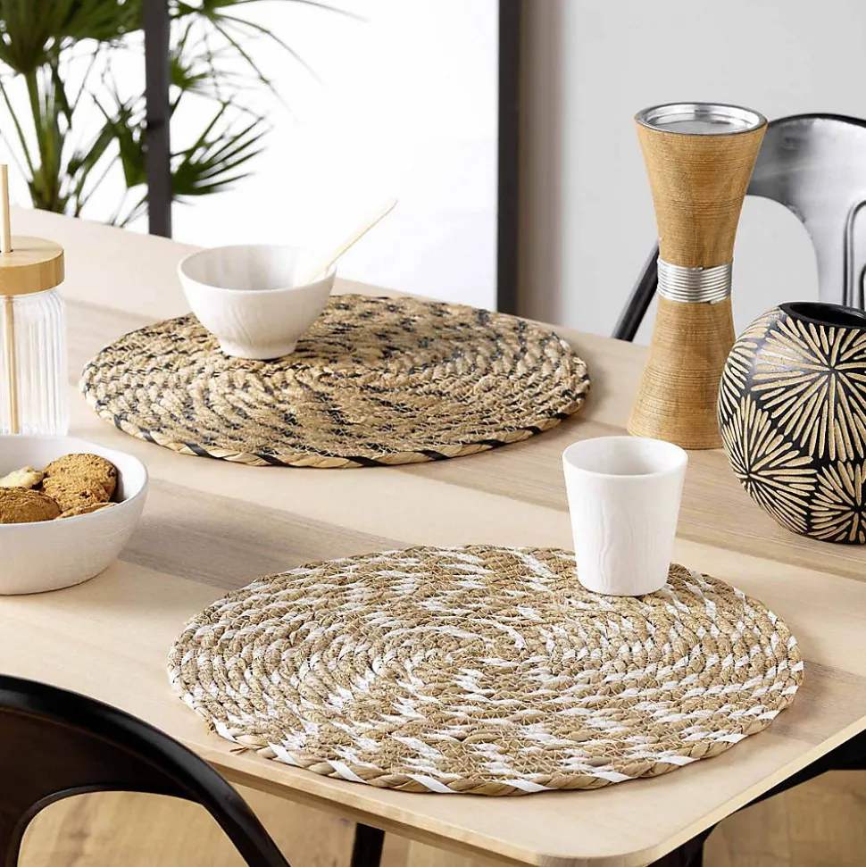 Pratique et esthétique, ce set de table au style ethnique sera un accessoire indispensable pour dresser votre plus jolie table. Celui-ci est rond en diamètre 38 cm et sera du plus bel effet sur une table en bois. Idéal au quotidien comme pour mettre en valeur votre vaisselle, il apportera une touche chaleureuse dans votre déco. Sa composition est la suivante: Paille de jonc et Polypropylène. A vous de créer cette ambiance estivale grâce à ce somptueux set de table. Vendu à l’unité .