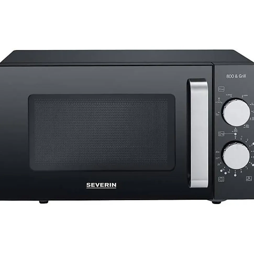 Four micro-ondes Severin 2 en 1 MW 7762 — 20 L, 800 W micro-ondes et 1000 W grill. Fond en verre plat innovant pour une cuisson homogène sans plateau tournant, nettoyage facile à la main, cuisson sur deux niveaux, 9 puissances et fonction décongélation selon le temps ou le poids, surface en céramique 26 x 26 cm, cavité de 17,5 cm de hauteur.
