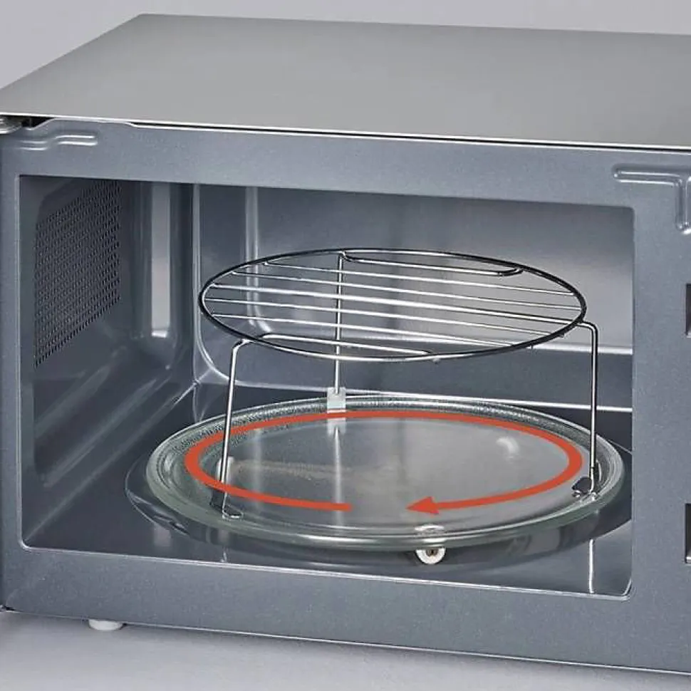 - Livré avec 2 grilles de cuisson, plateau tournant de 24,5 cm et verrouillage opérateur réglable.