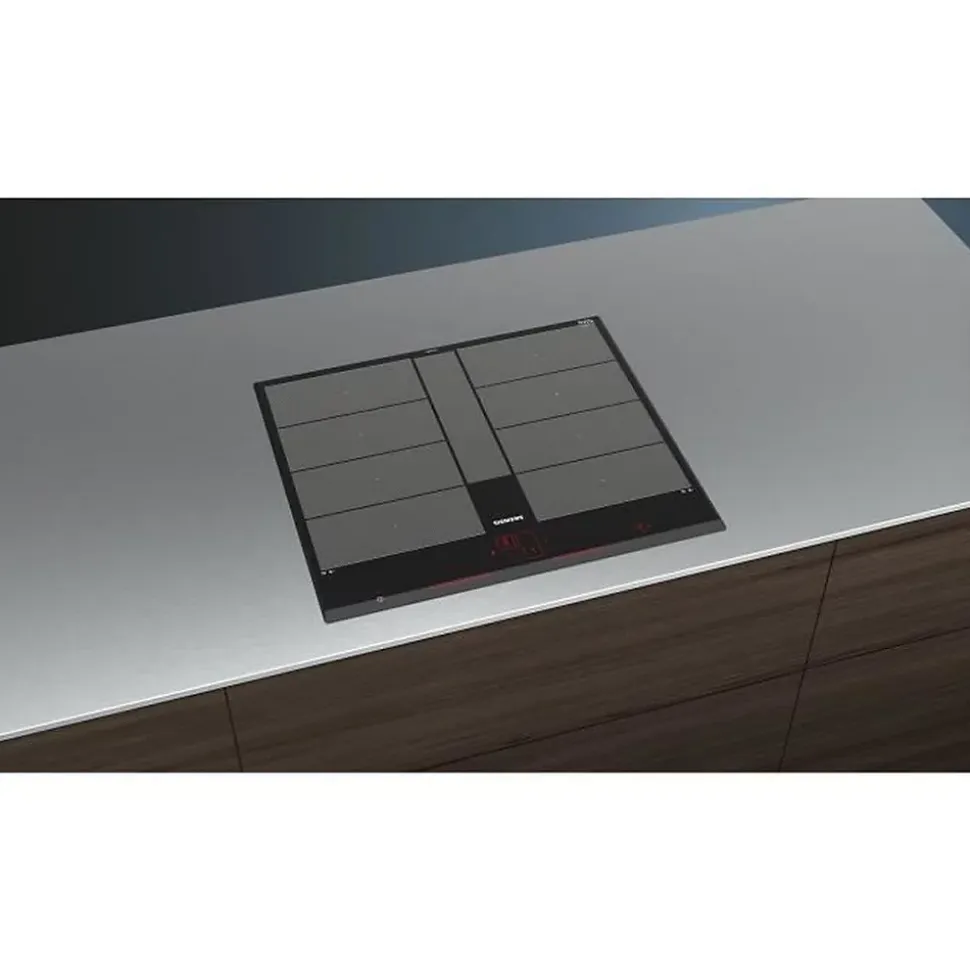 La plaque induction SIEMENS EX 651 LYC 1 F offre une expérience culinaire optimale avec ses 4 foyers, une puissance totale de 7400 W, un design moderne noir avec bords biseautés, des fonctionnalités avancées comme le système dual lightSlider, la zone flexible et le capteur fryingSensor, ainsi que la compatibilité Home Connect pour un contrôle à distance via smartphone. Elle est encastrable, dotée de commandes frontales sensitives, de 4 boosters, d’une minuterie et d’un verrouillage de sécurité enfants.