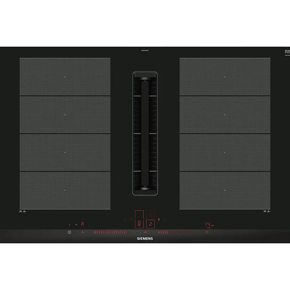 La plaque aspirante Siemens EX875LX67E combine design moderne et technologie avancée avec un système d’extraction intégré performant, zones FlexInduction modulables, contrôle tactile précis, sécurité renforcée et connectivité pour une cuisine confortable et efficace.