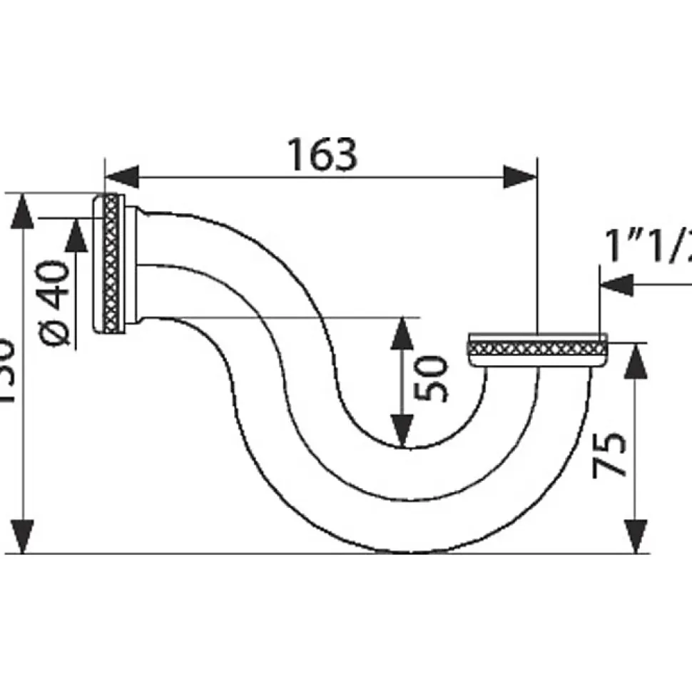 Siphon de baignoire ‘tube’, à grand débit Joint torique ø 40 Encombrement : 130 mm Garde d’eau 50 mm Débit 120 l/mn (sous 300 mm d’eau)