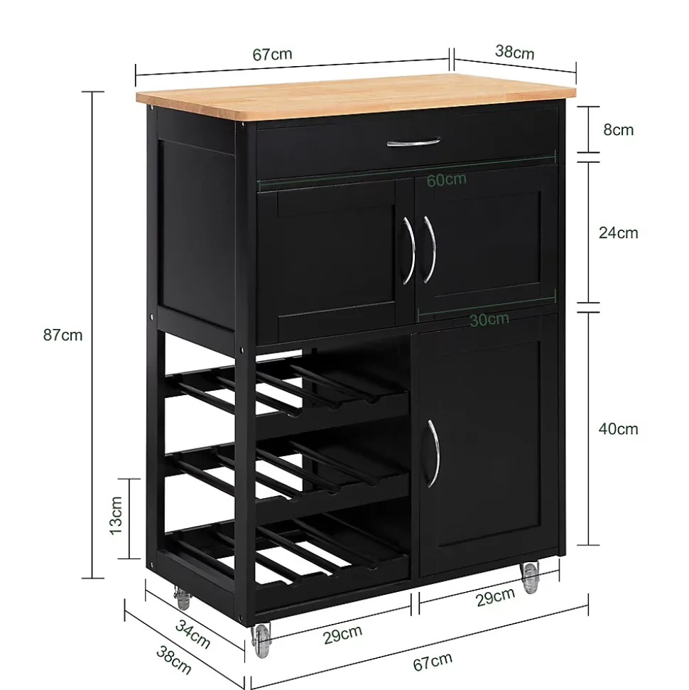 Cette moderne desserte de cuisine à roulettes est super pratique pour ranger vos verres de vin, bouteilles, ustensiles de cuisine, etc.1 grand tiroir pour des ustensiles de cuisine et 2 compartiments avec portes pour des vaisselles, bols, assiettes, etc. 3 porte-bouteilles jusqu’à 9 bouteilles.Matériaux de qualité, en bois d’hévéa, bois MDF, Roulettes en métal et plastique.Dimensions: L67cmxH87cmxP38cm. Dimensions du plan de travail : L67cmxP38cm. Capacité de charge: 60kg.Trois couleurs aux choix: FKW45-WN(blanc) / <a href= »https://www.sobuy.fr/products/sobuy%C2%AE-fkw45-sch-desserte-chariot-de-cuisine-de-service-roulant-meuble-armoire-de-rangement-cusine-sur-roulettes » style= »color: #1569e7; » data-mce-href= »https://www.sobuy.fr/products/sobuy%C2%AE-fkw45-sch-desserte-chariot-de-cuisine-de-service-roulant-me