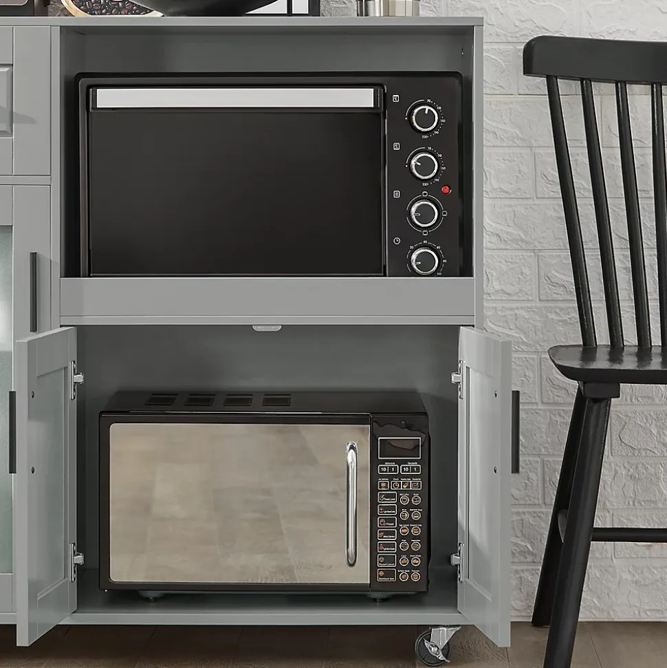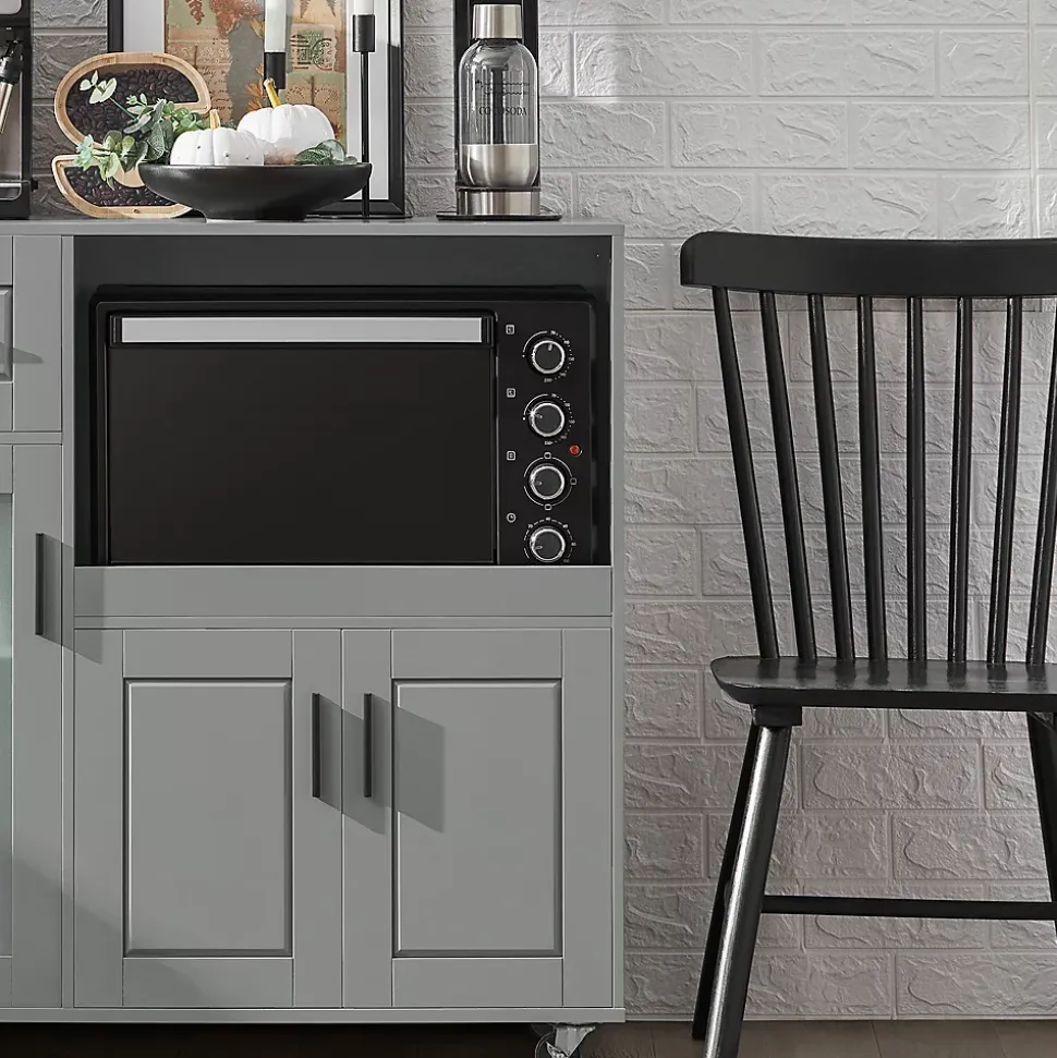 Armoire de cuisine design nordique contemporain gris et 1 porte vitrée : idéale pour ajouter une touche de modernité et d’élégance supplémentaire à votre intérieur.Une niche ouverte fermé et une fermée pour ranger votre four, micro-ondes, grille-pain ou autres petits appareils électroménagers.Avec la notice de montage illustrée et les pièces numérotées, le montage est facile.Deux compartiments fermés et un tiroir pratique pour ranger vos ustensiles, vaisselle ou autres accessoires.Le trou rond à l’arrière de chaque compartiment laisse passer les fils, ce qui cache bien les fils.L’étagère derrière la porte vitrée peut être ajustée à trois hauteurs pour maximiser l’espace de stockage.Avec les 4 roulettes de haute qualité (dont 2 avec freins), vous pouvez placer cette armoire de cuisine là où vous en avez besoin.Détails :Matière : MDF classe E1 et verre.Dimensions : 89 x 40 x 89 cm.Capacité de charge : jusqu’à 60 kg.Poids d’envoi : 30,1 kg.
