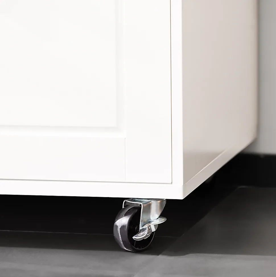 SoBuy FSB78-W Buffet Commode sur Roulettes Meuble Micro-ondes Armoire de cuisine design nordique contemporain et 1 porte vitrée : idéale pour ajouter une touche de modernité et d’élégance supplémentaire à votre intérieur.Une niche ouverte fermé et une fermée pour ranger votre four, micro-ondes, grille-pain ou autres petits appareils électroménagers.Le trou rond à l’arrière de chaque compartiment laisse passer les fils, ce qui cache bien les fils.Deux compartiments fermés et un tiroir pratique pour ranger vos ustensiles, vaisselle ou autres accessoires.L’étagère derrière la porte vitrée peut être ajustée à trois hauteurs pour maximiser l’espace de stockage.Le plateau haut vous offre d’espace supplémentaires pour votre machine à café à capsules, les bougies, les albums photos, etc.Avec les 4 roulettes de haute qualité (dont 2 avec freins), vous pouvez placer cette armoire de cuisine là où vous en avez besoin.Détails:- Matière : MDF classe E1 et verre.- Dimensions : 88,5 x 40 x 89 cm.- Capacité de charge : jusqu’à 60 kg.- Poids d’envoi : 28 kg.