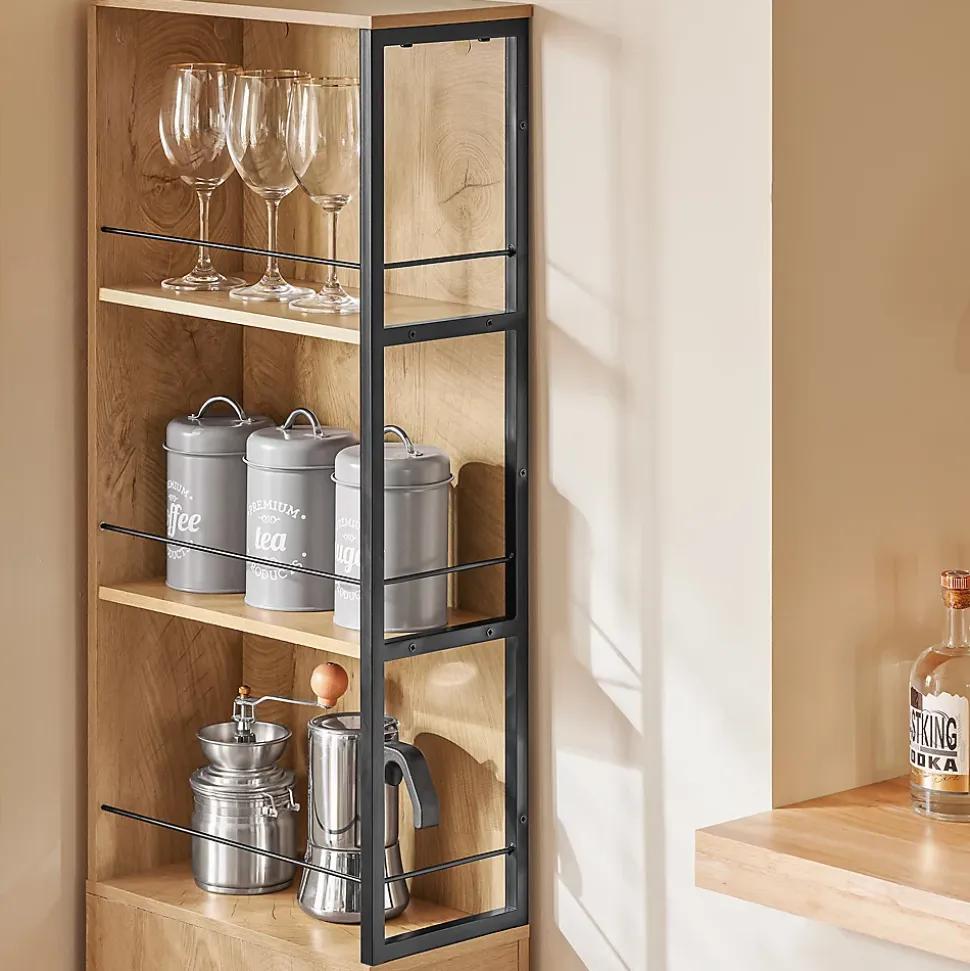 Meuble de rangement de cuisine SoBuy NSR13-N à 3 étages et 3 tiroirs Idéal pour les petits espaces, ce meuble offre une solution de rangement pratique et fonctionnelle. Caractéristiques principales : Construction robuste en fer et bois Largeur de seulement 20 cm pour s’adapter aux espaces restreints 3 tiroirs pour organiser les aliments et accessoires de cuisine 3 étagères ajustables à gauche ou à droite selon les besoins 4 roulettes dont 2 freinées pour une mobilité et une stabilité optimales Conception amovible permettant une utilisation polyvalente Spécifications : Matériaux : PB (E1) et fer Dimensions (LxPxH) : 40x20x170 cm Capacité de charge : 26 kg Poids : 21 kg Parfait pour la cuisine, la salle à manger ou tout espace nécessitant un rangement supplémentaire.