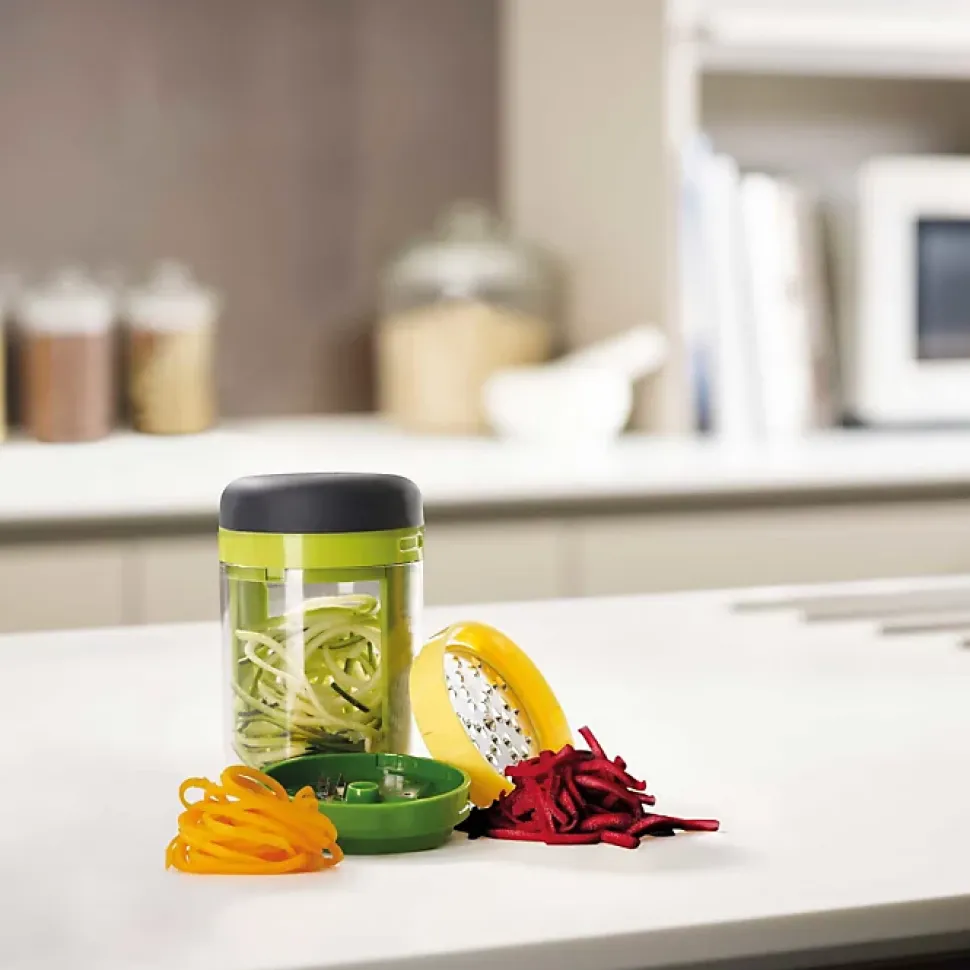Transformez vos légumes en spirales esthétiques et régulières avec le Spiro Coupe Légumes Spirale 3 en 1 Joseph Joseph. Polyvalent, avec 3 modes de découpe intégrés, il permet de créer tagliatelles, rubans et spirales pour des plats créatifs et healthy. Fabriqué en acier inoxydable, il est robuste, facile à nettoyer (compatible lave-vaisselle) et sûr grâce à sa base antidérapante et son système de verrouillage intelligent. Compact et ergonomique, il est idéal pour tous les passionnés de cuisine.