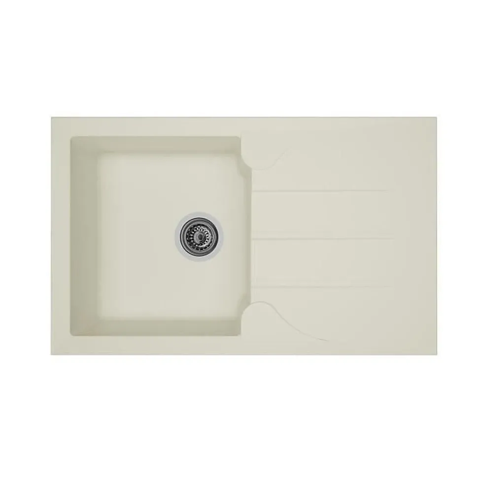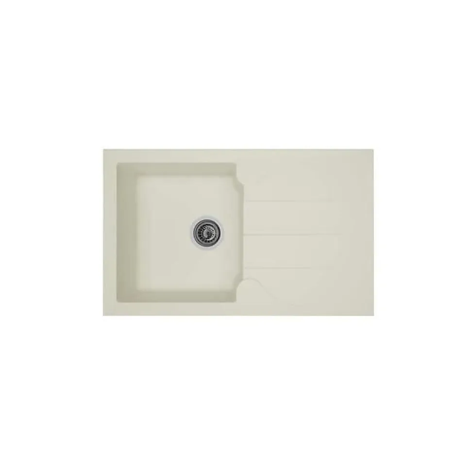 - Évier encastré 1 bac en résine blanche avec égouttoir réversible, résistant à la chaleur et facile d’entretien.