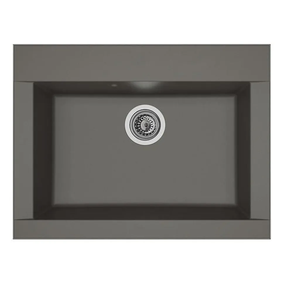 Evier Hexo SMC 1 bac sans égouttoir – Réversible – Vidage manuel bonde Ø90 mm – Coloris : gris béton – Dimensions : 66×50 cm.