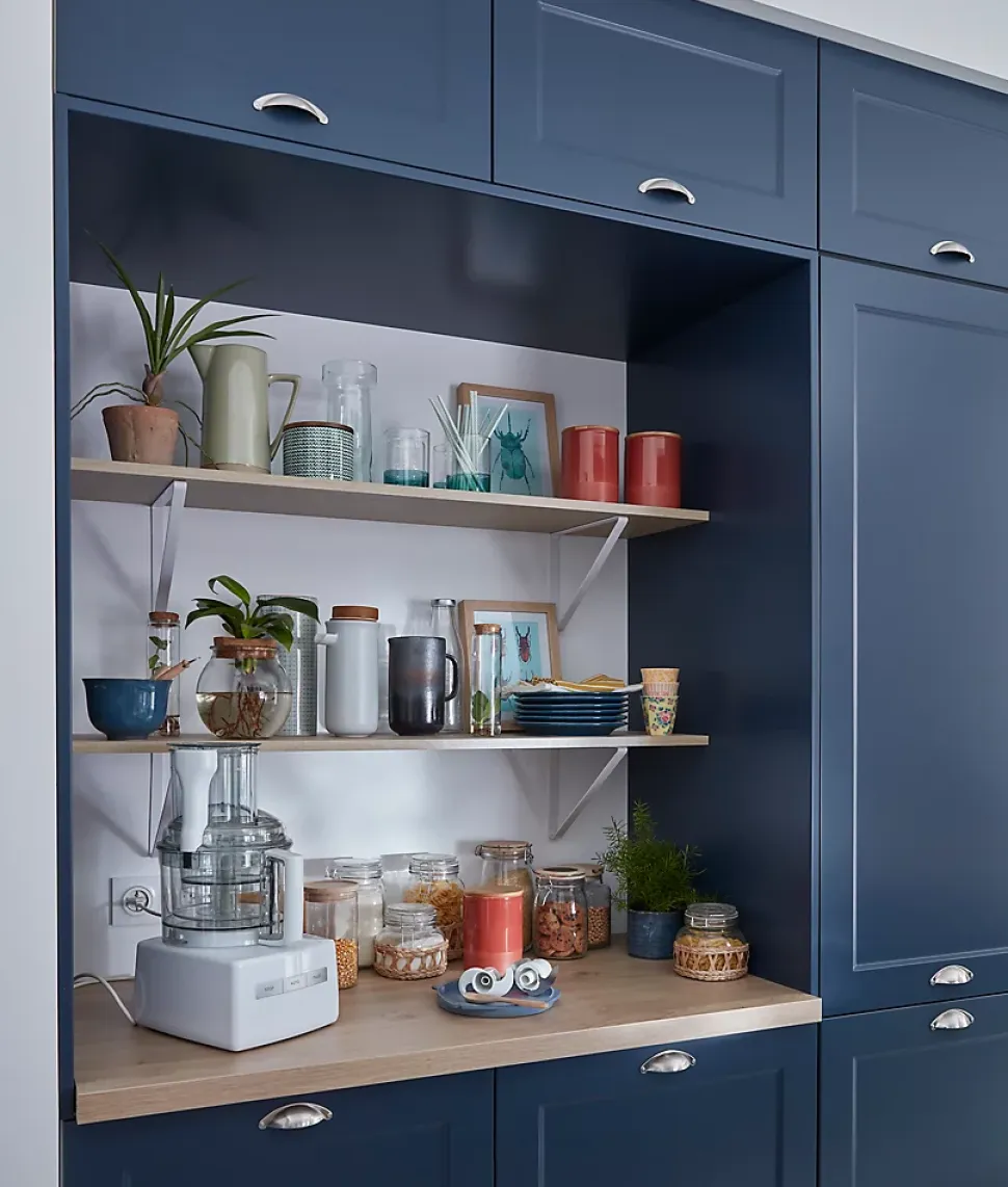 Nous avons conçu nos meubles de cuisine dans une perspective de durabilité. Ils sont voués à subir beaucoup d’usure et doivent donc être résistants. Des panneaux de 1,8cm d’épaisseur et une protection ABS sur les bords avant protègent ce lot contre les chocs et garantissent sa robustesse. Il a été conçu pour le lot d’étagères pour appareils électroménagers ou colonne. Nous proposons une large gamme de charnières et tiroirs disponibles séparément. Vous pouvez choisir des solutions à ouverture Push to open ou à fermeture amortie. Un détail qui fait toute la différence