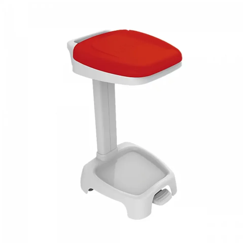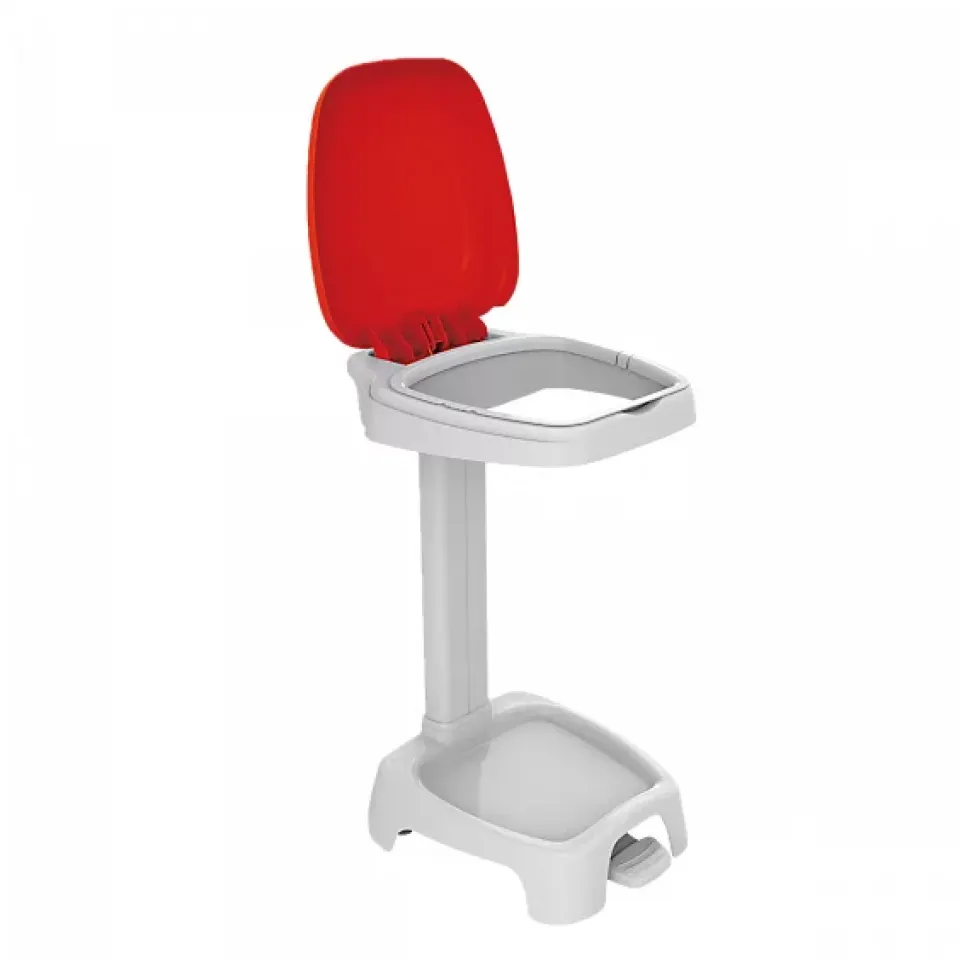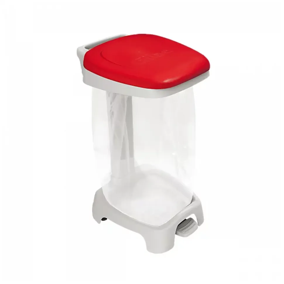 Support sac 120 L avec couvercle rouge. Le couvercle peut rester en position ouverte (ouverture manuelle) ou s’ouvrir et se refermer (quand il est actionné avec la pédale). La pédale permet également d’éviter les contaminations. Support sac équipé de 2 roues pour faciliter le déplacement. 2 roues supplémentaires sont disponibles en option. Mise en place et extraction du sac très facile. La poignée droite, à l’arrière, permet un meilleur positionnement contre les murs. 5 couleurs de couvercle adaptées au tri sélectif sont disponibles. Le support sac couvercle rouge est livré en 2 colis distincts (1 colis pour le support sac, 1 colis pour le couvercle). Support sac livré à assembler.