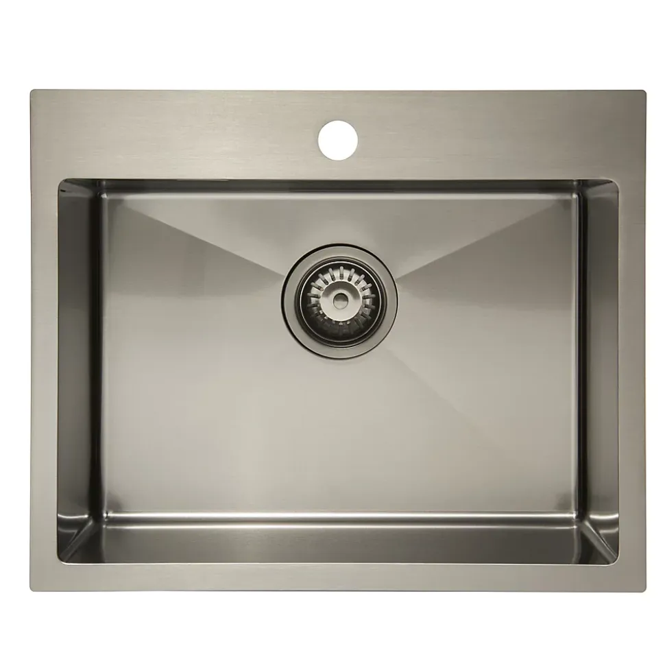 Caractéristiques de l’évier à encastrer en acier inoxydable 304, 55x45x21 cm, avec trop plein, Gun Metal PVD (SATSINK5545BGM):Matière: Acier inoxydable 304Coloris : Gun Metal PVDDimensions: 55x45x21 cmÉpaisseur : 1,5 mmType d’installation : À encastrerAvec trop pleinTrous percé pour robinetterieDiamètre de la bonde : 90mmLivré sans siphon