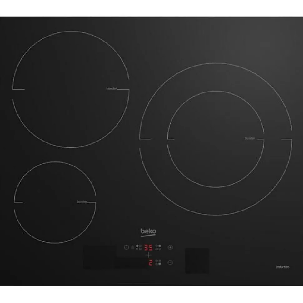 La table a induction BEKO HII63405MT est équipée de 3 plaques de cuisson. Elle a une largeur de 58 cm et une profondeur de 51 cm. Sa couleur principale est le noir.