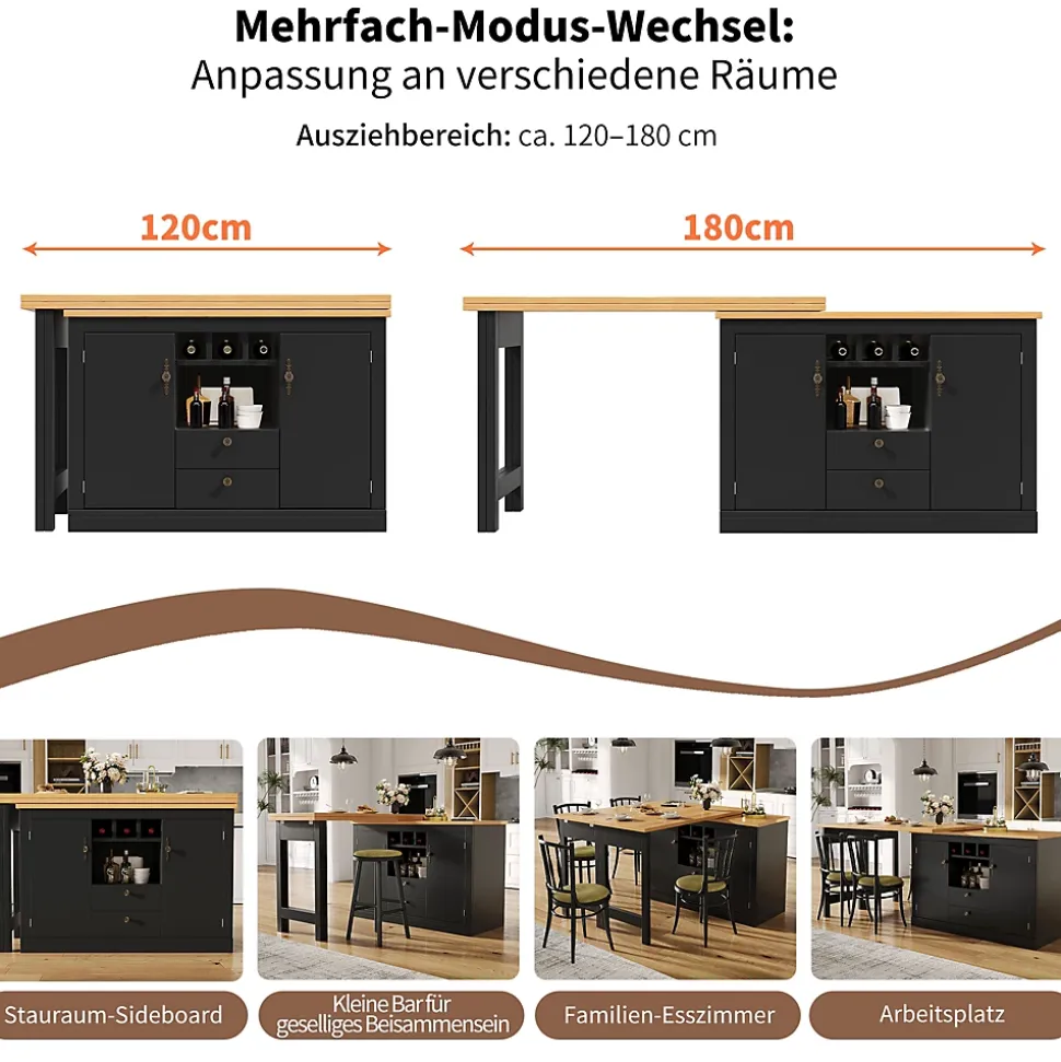 - 【Système de table extensible】 La table s’allonge de 120 à 180 cm, permettant d’accueillir plus de convives pour les repas ou réunions. Cette fonctionnalité améliore l’utilisation de l’espace et s’adapte aux différents besoins familiaux ou sociaux.
