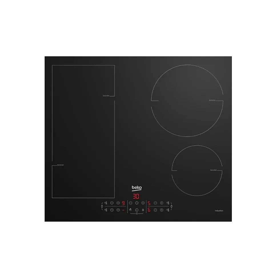 Table de cuisson à induction 4 feux 60cm 7200kw noir Beko – Table de cuisson à induction HII64203FMT de Beko.Agrandissez votre espace de travail Profitez d’une technologie aux multiples avantages Bénéficiez d’une puissance jusqu’à 7200W Modulez vos plats comme vous le souhaitez Un accès rapide et simple à chaque foyer.Une dimension standard qui vous procure un bel espace de travail.Design épuré, réglage précis et immédiat, économie d’énergie, l’induction offre une souplesse de cuisson incomparable. Sa précision et sa puissance de cuisson subliment la qualité des produits.La puissance totale de la table de cuisson peut s’élever jusqu’à 7200 W. Elle vous offre ainsi la souplesse de cuire ou faire bouillir votre eau très rapidement, mais aussi de faire mijoter en douceur.La zone modulaire est une grande surface de cuisson, entièrement modulable selon les plats utilisés. Elle vous permet de chauffer de grands plats avec une puissance maximale de 3600 W ou de combiner plusieurs plats selon votre convenance.Des commandes individuelles pour régler indépendamment la puissance de chaque foyer avec un accès simplifié au booster. – Type de produit : Plaque de cuisson.Type de pose : Encastrable.Séries : b300.Nombre de foyer(s) : 4.Plateforme : Induction.Type de commandes : Sensitive.Largeur (cm) : 60.Type de commandes : Contrôle avant tactile.Tension (V) : 220-240 1N/ 380-415 2N.Fréquence (Hz) : 50.Câble d’alimentation fourni : Standard.Finition : Verre.Couleur : Noir.Type de commandes : Tactiles – Smart Access.Minuteurs : Oui.Booster : Oui.Nbre de niveaux de puissance : 9.Power Management : Oui.Fonction pause : Oui.Puissance totale électrique (kW) : 7200 watts.Indicateurs de chaleur résiduelle : Oui.Verrouillage des commandes : Oui.Arrêt automatique : Oui.Voyant On-Off : Oui.Foyer arrière droit (type, puissance, dimension) :