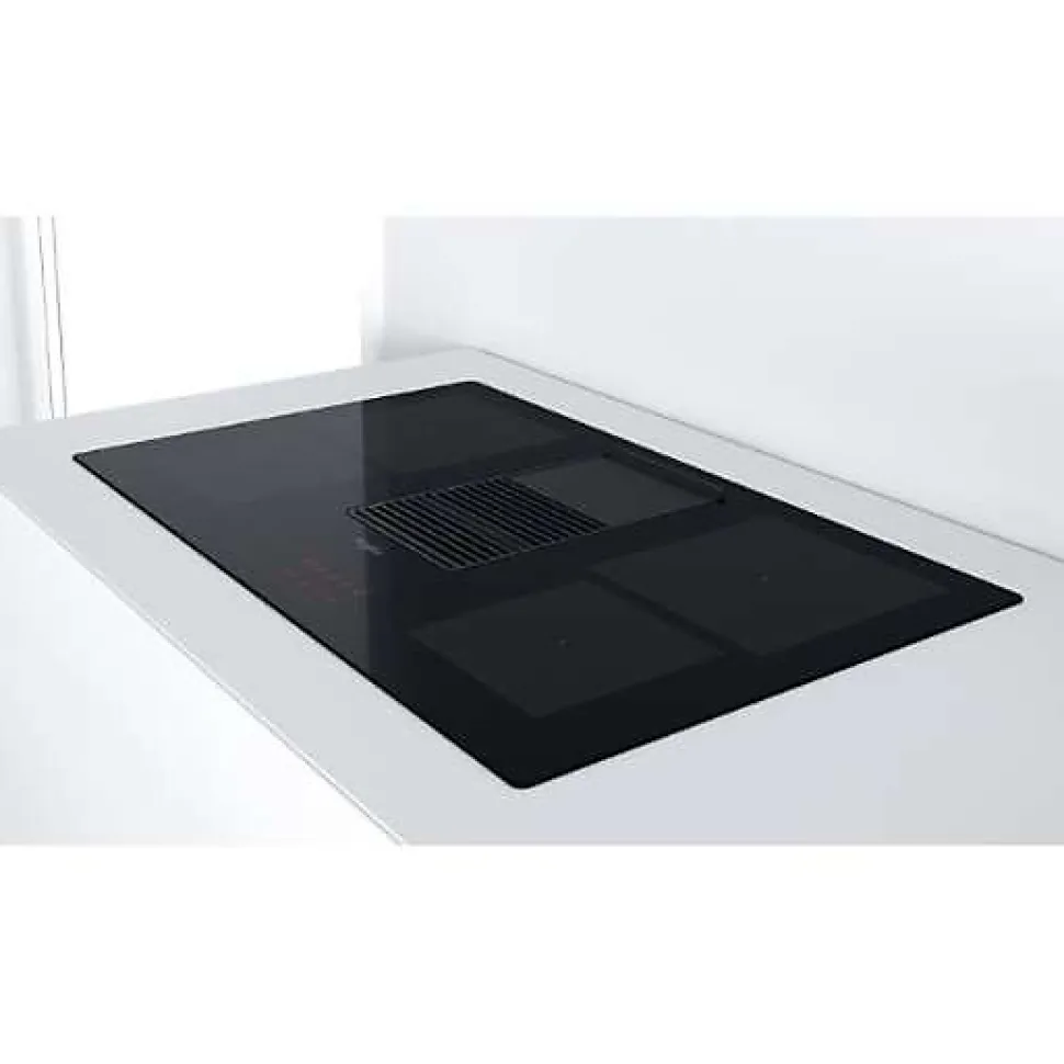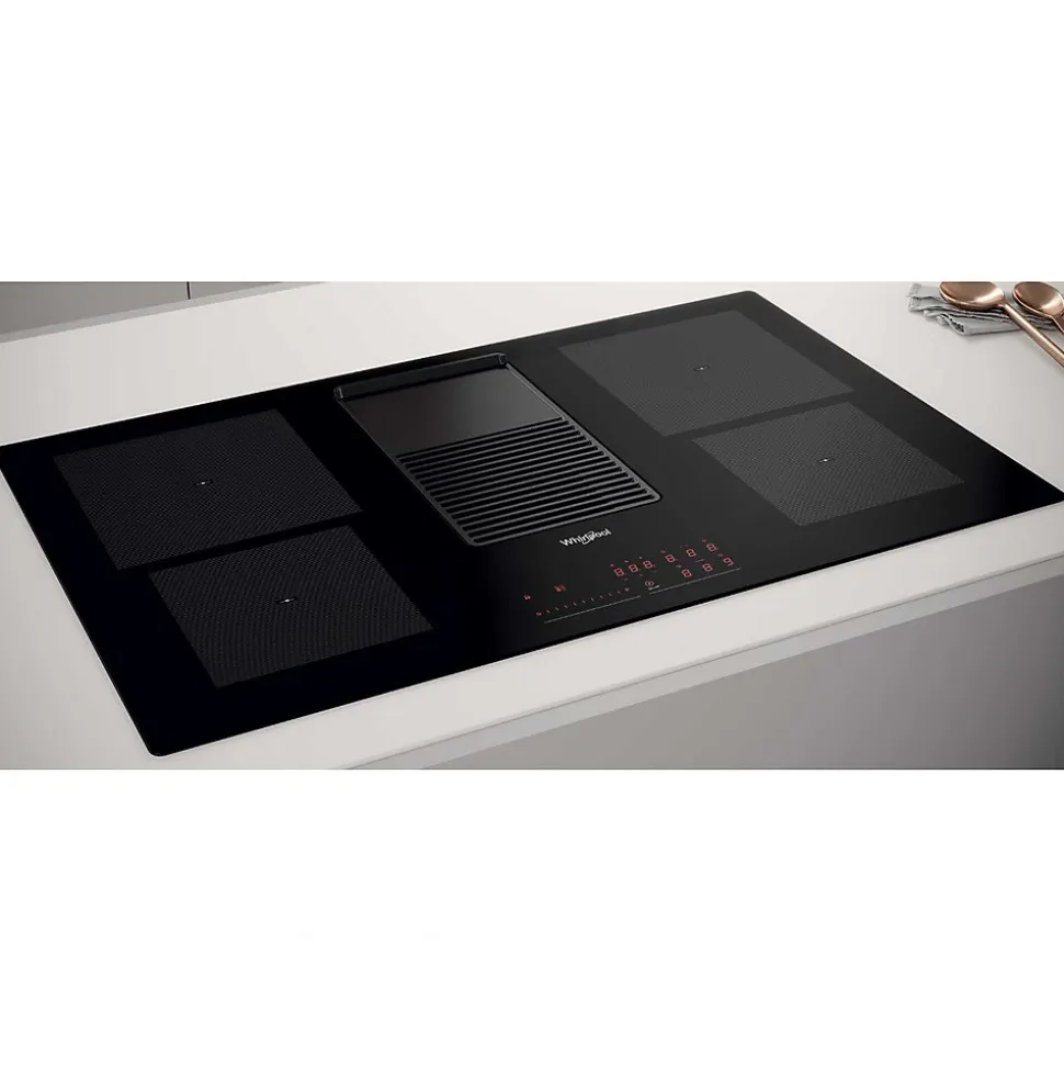 Table de cuisson aspirante induction 83cm 4 feux 7500w noir Whirlpool – Table de cuisson aspirante induction W Collection WVH92K/1 de WHIRLPOOL avec un design épuré et raffiné pour une harmonie parfaite dans la cuisine. La hotte intégrée aspire les fumées et odeurs avec efficacité maximale. Grâce à ses 3 niveaux de puissance et 2 niveaux de booster, elle garantit de hautes performances d’aspiration en toutes circonstances. Parfaitement intégrée au centre de la plaque, la grille en finte d’aliminium de la hotte est conçur pour être ultra-résistante et vous permettre de faire glisser vos cassoroles d’un bout à l’autre de la plaque d’un seul mouvement. De plus, son anti-adhérente et facile à nettoyer. L’élegant bandeau de commande sensitif offre un accès intuitif et immédiat à toutes les fonctions de la plaque. U n simple glissement sur le slider central suffit pour régler la puissance de la plaque et la puissance d’aspiration. – Type de produit : Table induction avec hotte intégrée.Gamme : W Collection.Type de plaque : Induction.Type d’encastrement : A recouvrement plan de travail.Energie : Electricité.Hotte intégrée : Oui.Nbre foyer(s) : 4.Touche(s) sensitive(s) : Oui.Type de commande(s) : Slider central.Position des commandes : Frontale.Zone de cuisson modulable (flex) : Non.Foyer le + puissant (W) : 2 300.Foyer le + puissant avec booster (W) : 3 000.Matière de la surface : Vitrocéramique.Le(s) plus-produit(s) : Revêtement Teflon.Classe énergétique : A.Conso. d’énergie annuelle (kWh/An) : 53.5.Débit d’air (m3/h) : De 180 à 410 (Boost : 600).Mode(s) : Evacuation ou recyclage.Vitesse(s) : 3 + 2 boost.Filtre à charbon : En option.Filtre(s) : Filtre à graisse métallique.Autre(s) : Grille en fonte d’aluminium.Connecté : Non.Nbre de positions de cuisson : 10.Booster(s) : Oui.Minuterie : Oui.Nbre de minuterie(s) : 4.Accès direct