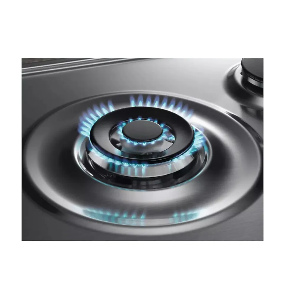 La plaque gaz Electrolux EGS6414X offre un design élégant avec finition inox anti-traces, puissants brûleurs dont un wok 4000W, sécurité renforcée avec coupure automatique, et une installation simple grâce à ses dimensions standards et son câble de 1,1 m.