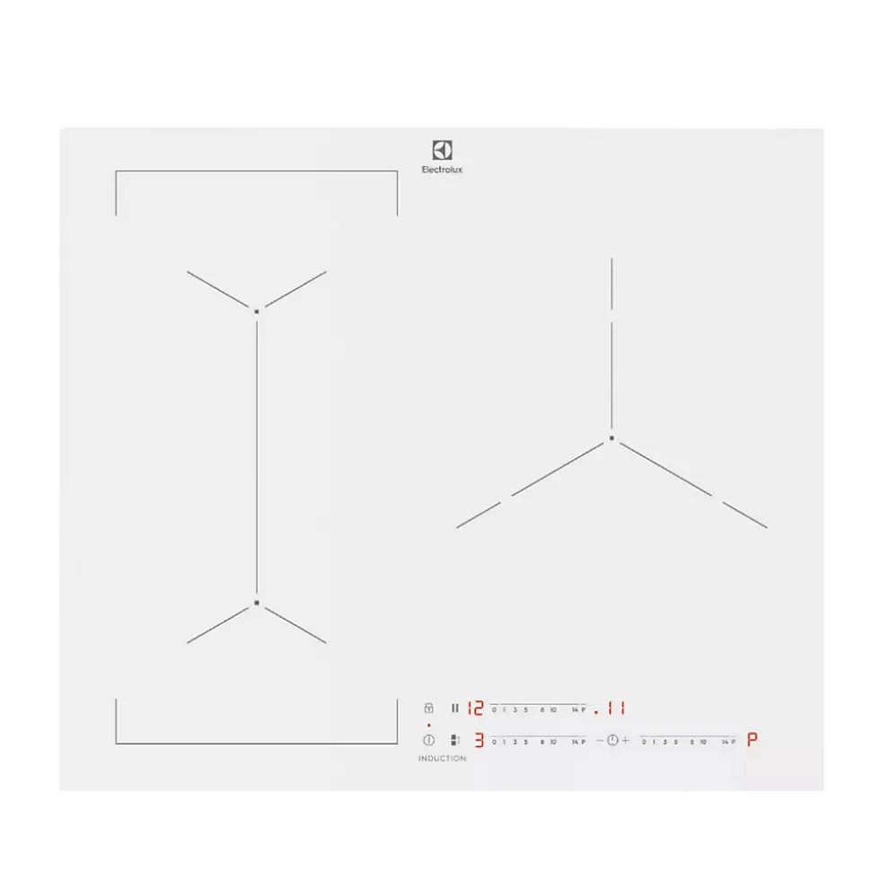 Table de cuisson induction 3 feux 7350w blanc Electrolux – Table de cuisson Série 600 EIV63342CW/1 d’Electrolux.Fusionnez les zones pour plus d’espace de cuisson avec la fonction Bridge : La plaque de cuisson à induction Série 600 Bridge vous permet de combiner deux zones de cuisson séparées pour créer une seule grande surface. La température et le temps de cuisson étant harmonisés automatiquement, cette fonction est idéale pour la plupart des planchas ou cocottes.Plus d’espace grâce à la fonction Bridge : La fonction Bridge de cette plaque de cuisson à induction vous permet de combiner deux zones de cuisson en une seule plus grande. La température et les paramètres de temps sont synchronisés automatiquement. Idéal pour vos planchas !Commandes individuelles sensitives à accès direct.Ajustez facilement les réglages de température de votre plaque de cuisson avec les touches sensitives à accès directes. Chaque zone de cuisson peut être contrôlée individuellement et vous permet de régler instantanément un niveau de cuisson optimal.Surveillez votre cuisson sans effort grâce au minuteur : Gardez la main sur le temps de cuisson grâce au minuteur. Il vous permet de suivre facilement la cuisson et peut être réglable jusqu’à une heure. Il éteint la zone de cuisson sélectionnée lorsque le temps est écoulé.Les zones de cuisson Infinite s’adaptent à vos récipients.Les zones de cuisson Infinite s’adaptent à la taille de vos récipients dès que vous les posez dessus. Ces zones offrent une couverture totale, quelle que soit la taille du récipient, pour offrir la chaleur nécessaire, sans perte de performances.Une ébullition en un temps-record : La fonction Booster de cette plaque de cuisson est idéale pour chauffer en un temps record. – Type de produit : Plaque à induction.Gamme : Série 600.Nbre foyer(s) : 3.Type de commande(s) : Sensitives avec accès direct.Emplacement des commandes :