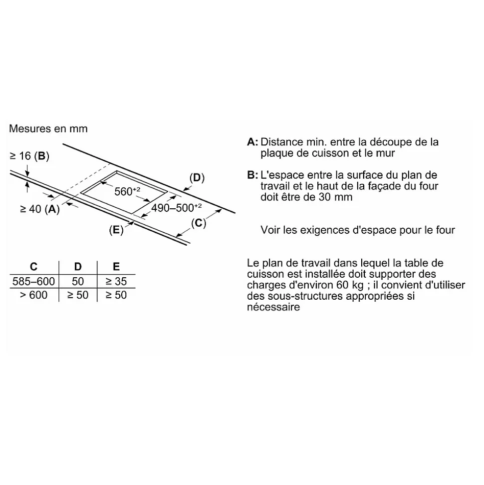 - Design sobre et compact, encastrable 60 cm adaptable à toutes les cuisines