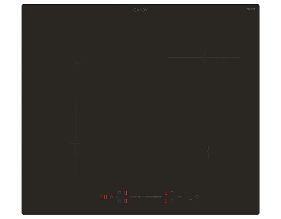 Plaque à induction Candy CTP644SCBB, 4 zones de cuisson modulables, booster, verre-céramique noir, contrôle tactile, sécurité avancée et design élégant.
